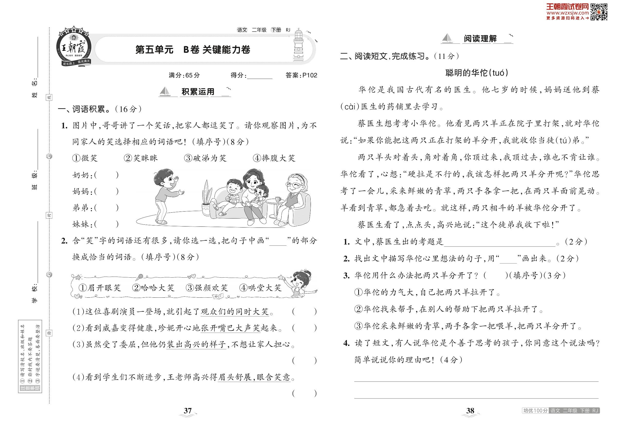 2023下册二年级语文人教版 第五单元 B卷 关键能力卷