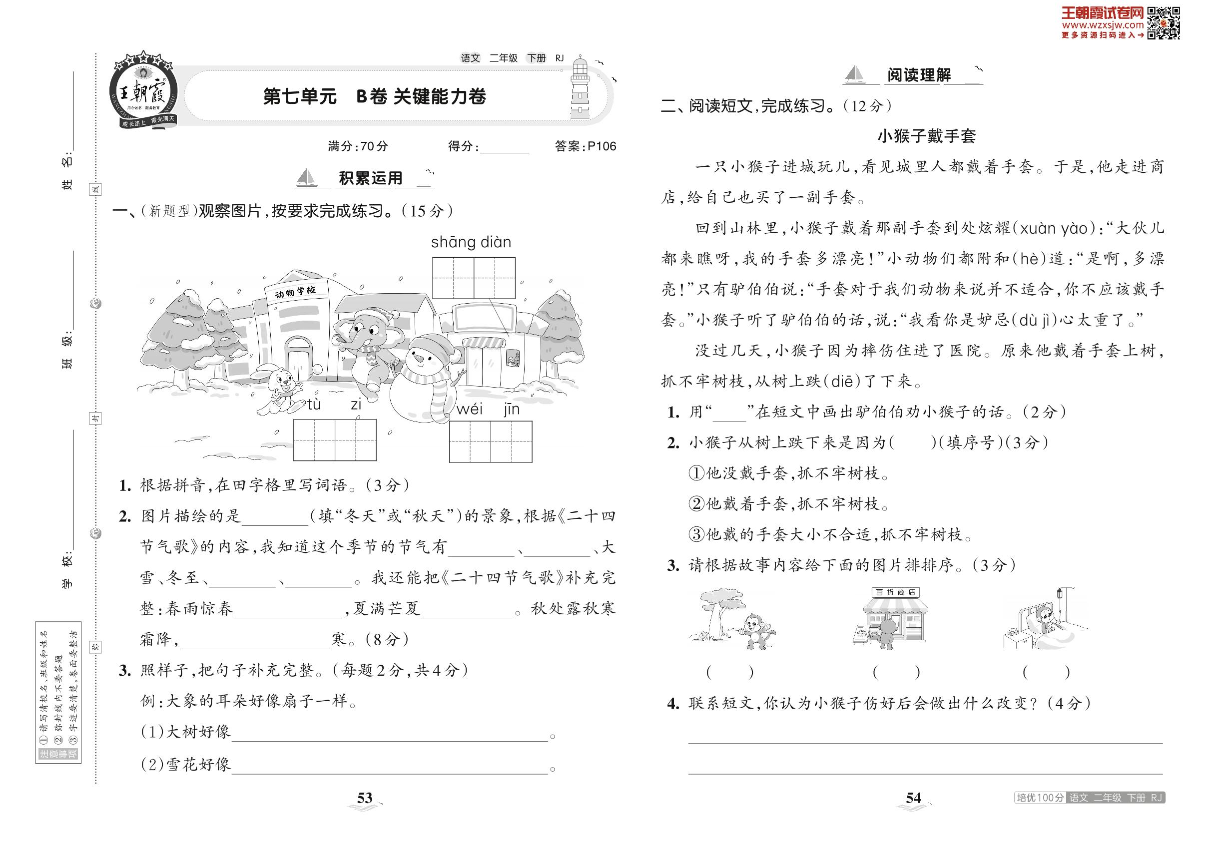 2023下册二年级语文人教版 第七单元 B卷 关键能力卷
