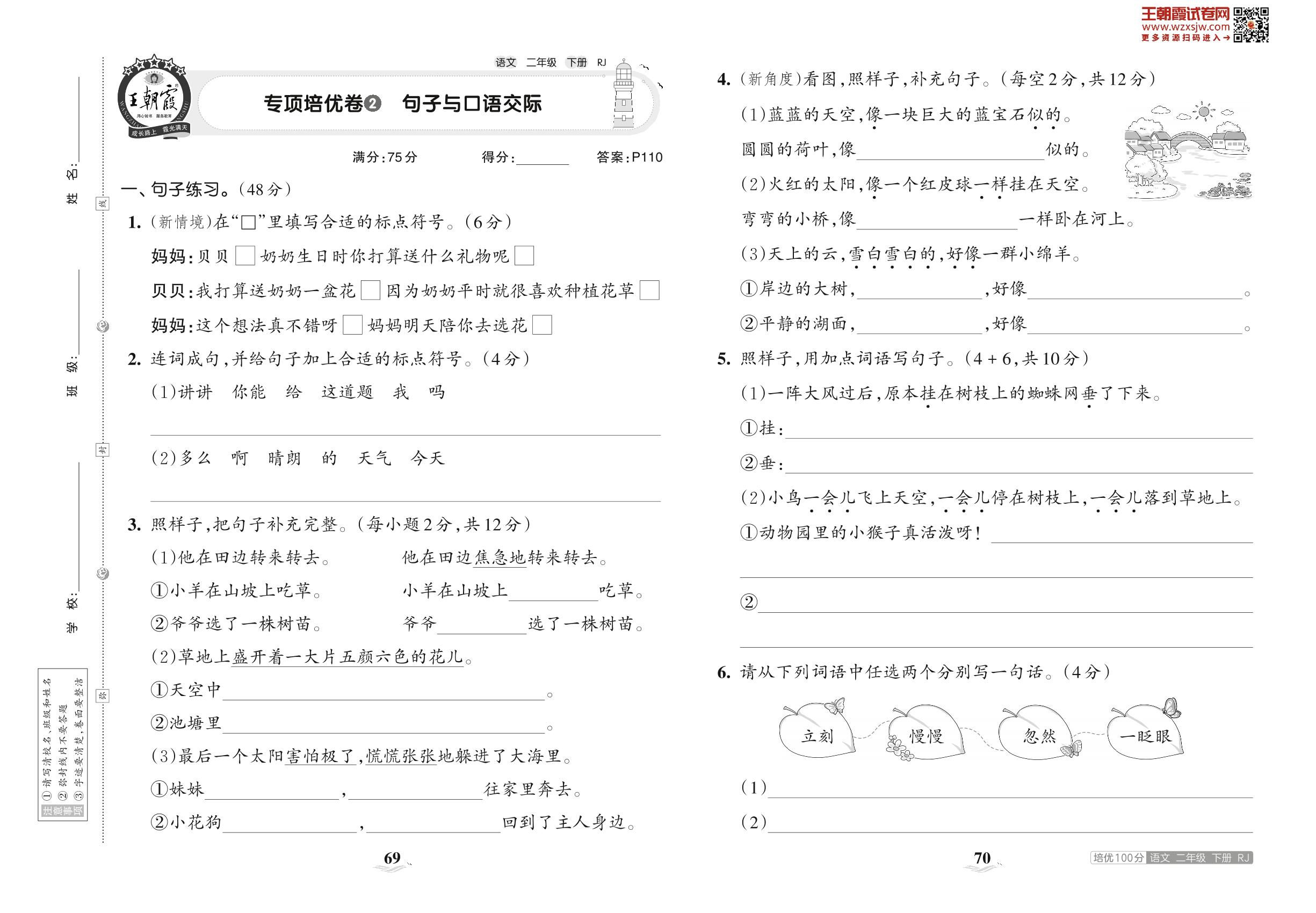 2023下册二年级语文人教版 专项培优卷2 句子与口语交际