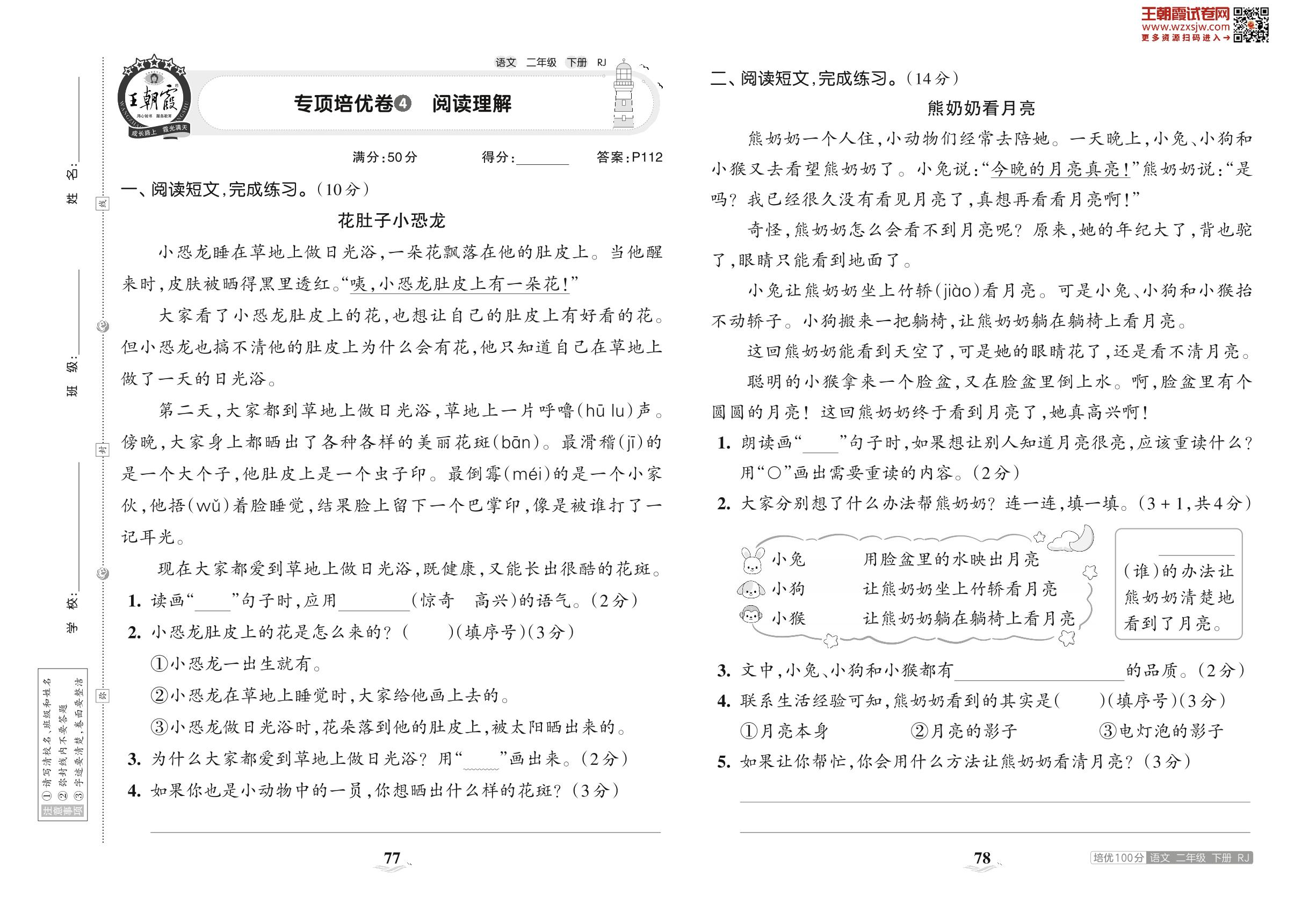 2023下册二年级语文人教版 专项培优卷4 阅读理解