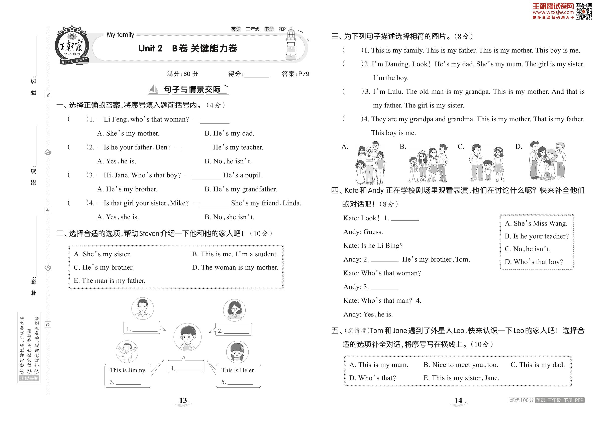 2023下册三年级英语人教PEP版 Unit 2 B卷 关键能力卷