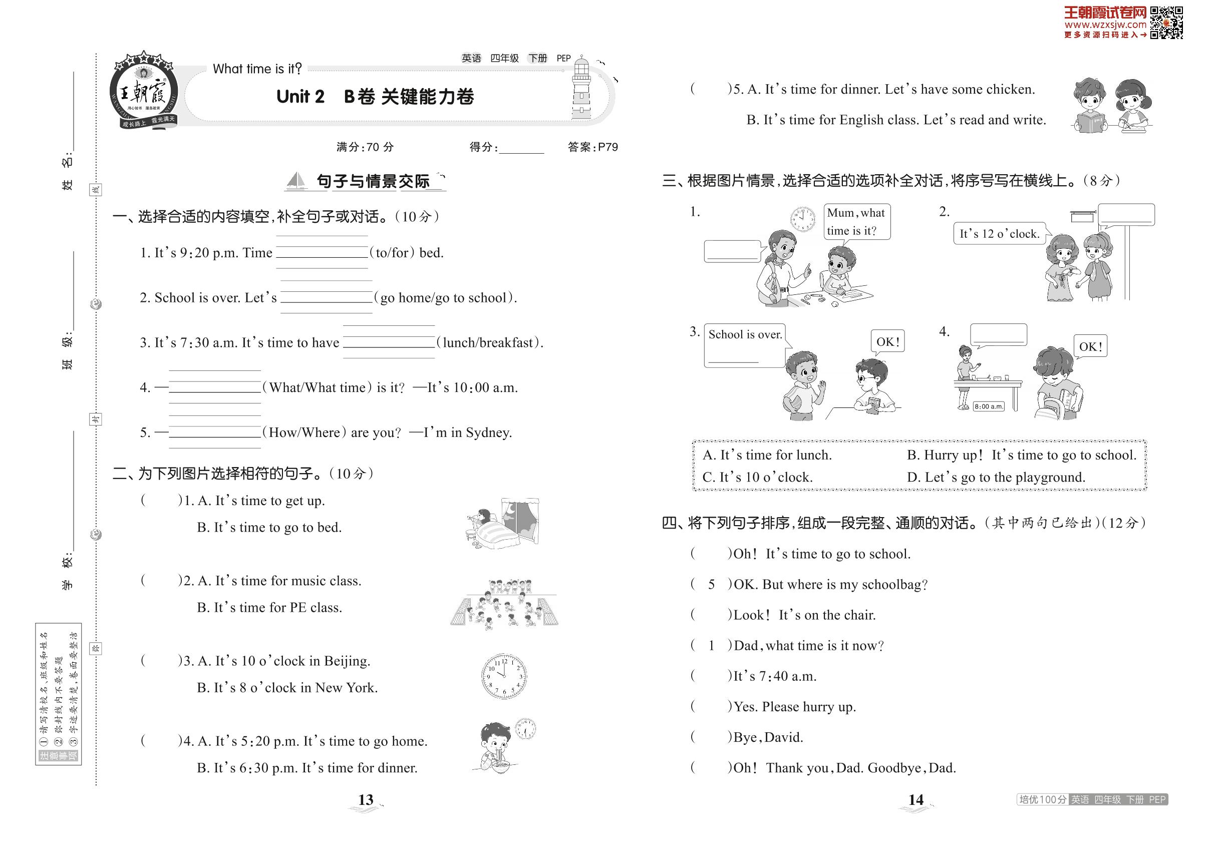 2023下册四年级英语人教PEP版 Unit 2 B卷 关键能力卷