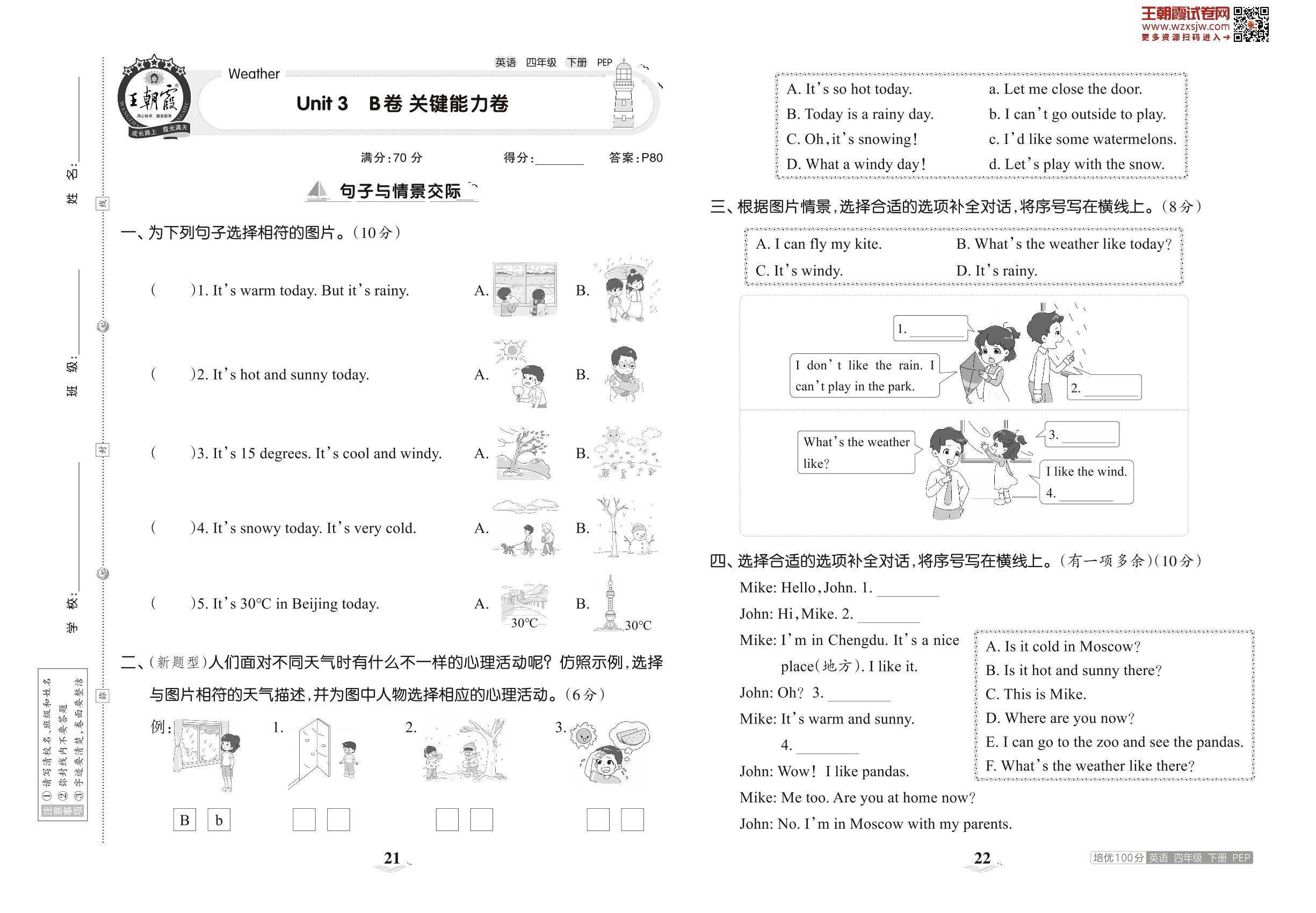2023下册四年级英语人教PEP版 Unit 3 B卷 关键能力卷