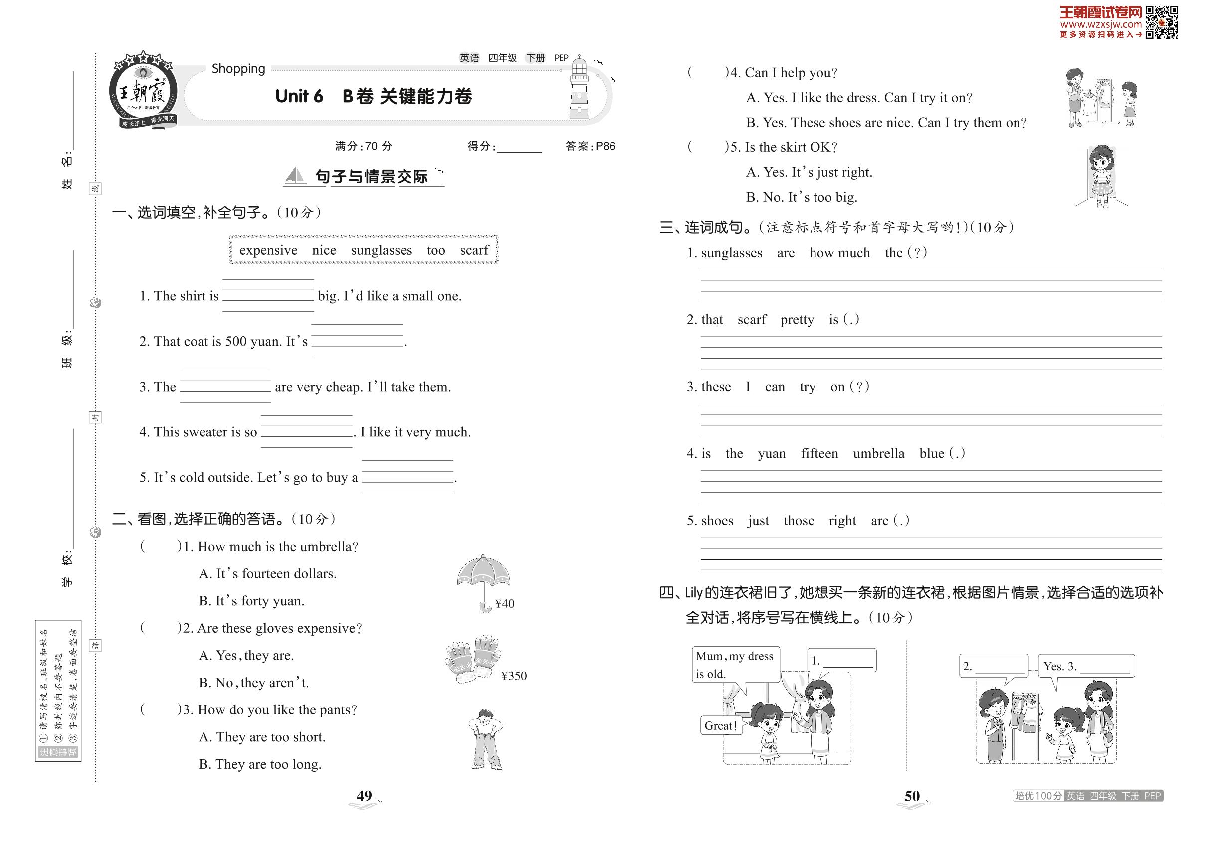 2023下册四年级英语人教PEP版 Unit 6 B卷 关键能力卷
