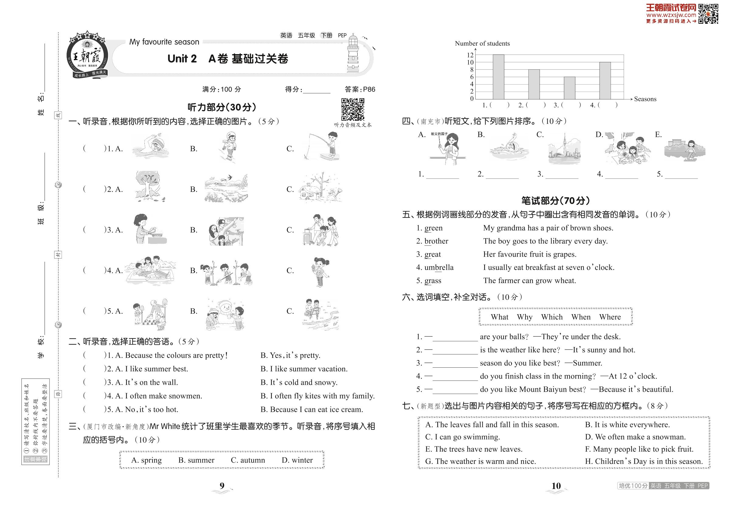 五年级英语人教PEP版(三起始)下册单元卷