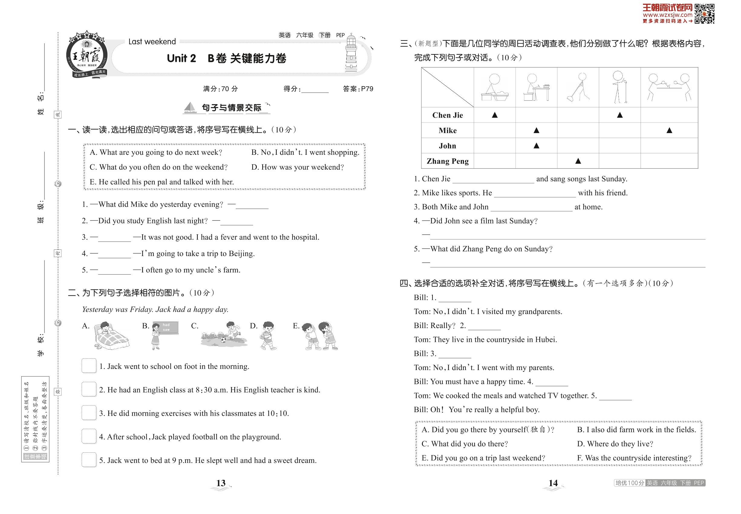 2023下册六年级英语人教PEP版 Unit 2 B卷 关键能力卷