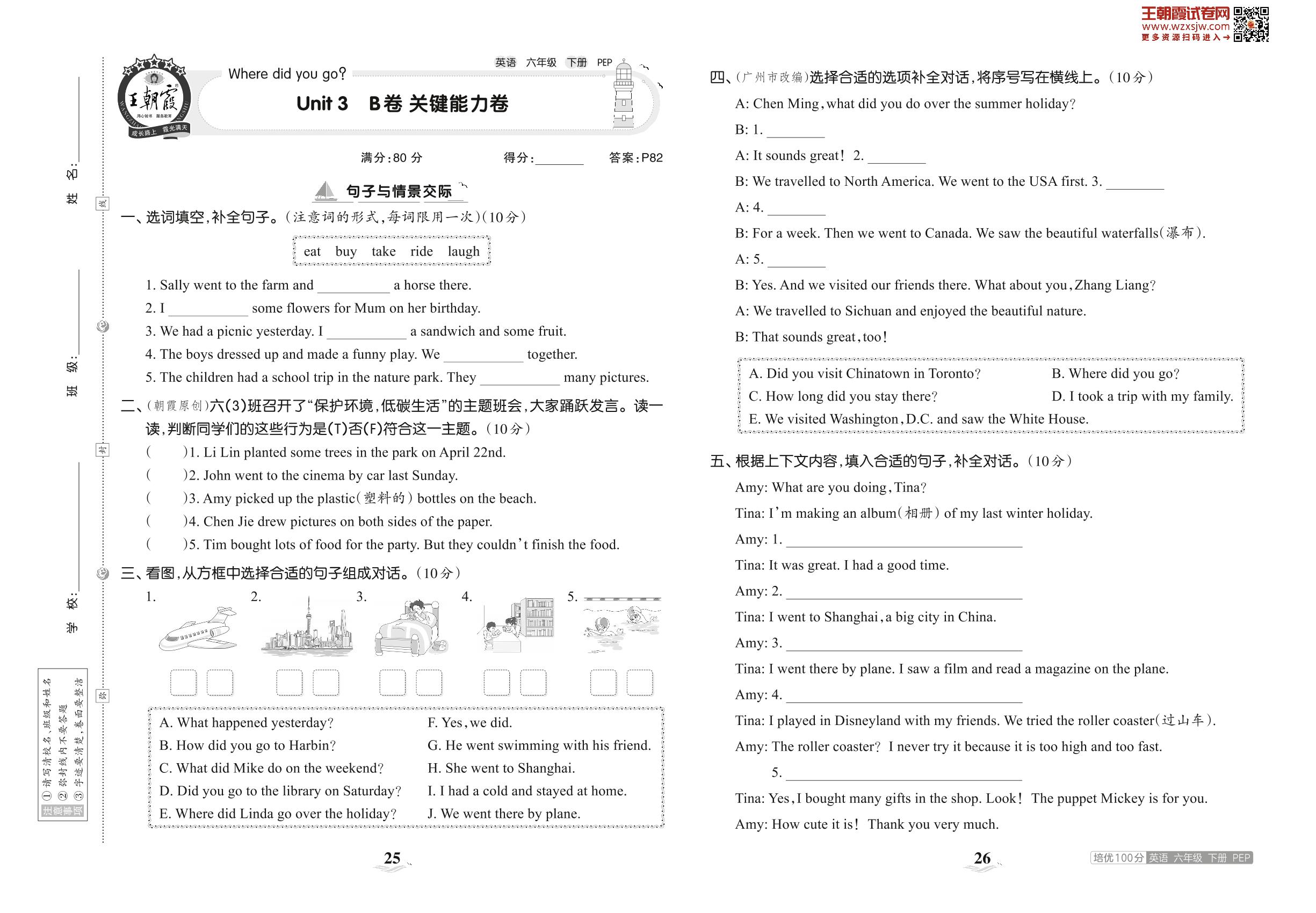 2023下册六年级英语人教PEP版 Unit 3 B卷 关键能力卷