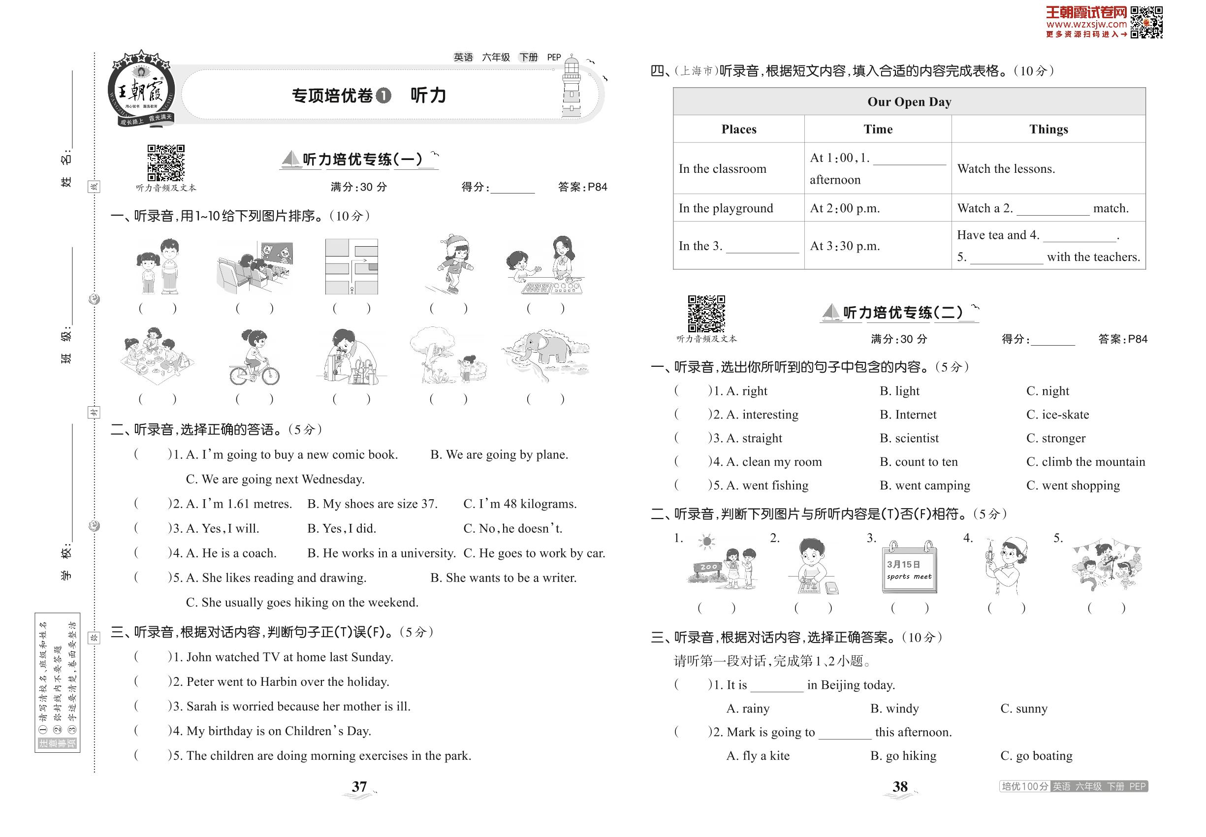 2023下册六年级英语人教PEP版 专项培优卷1 听力