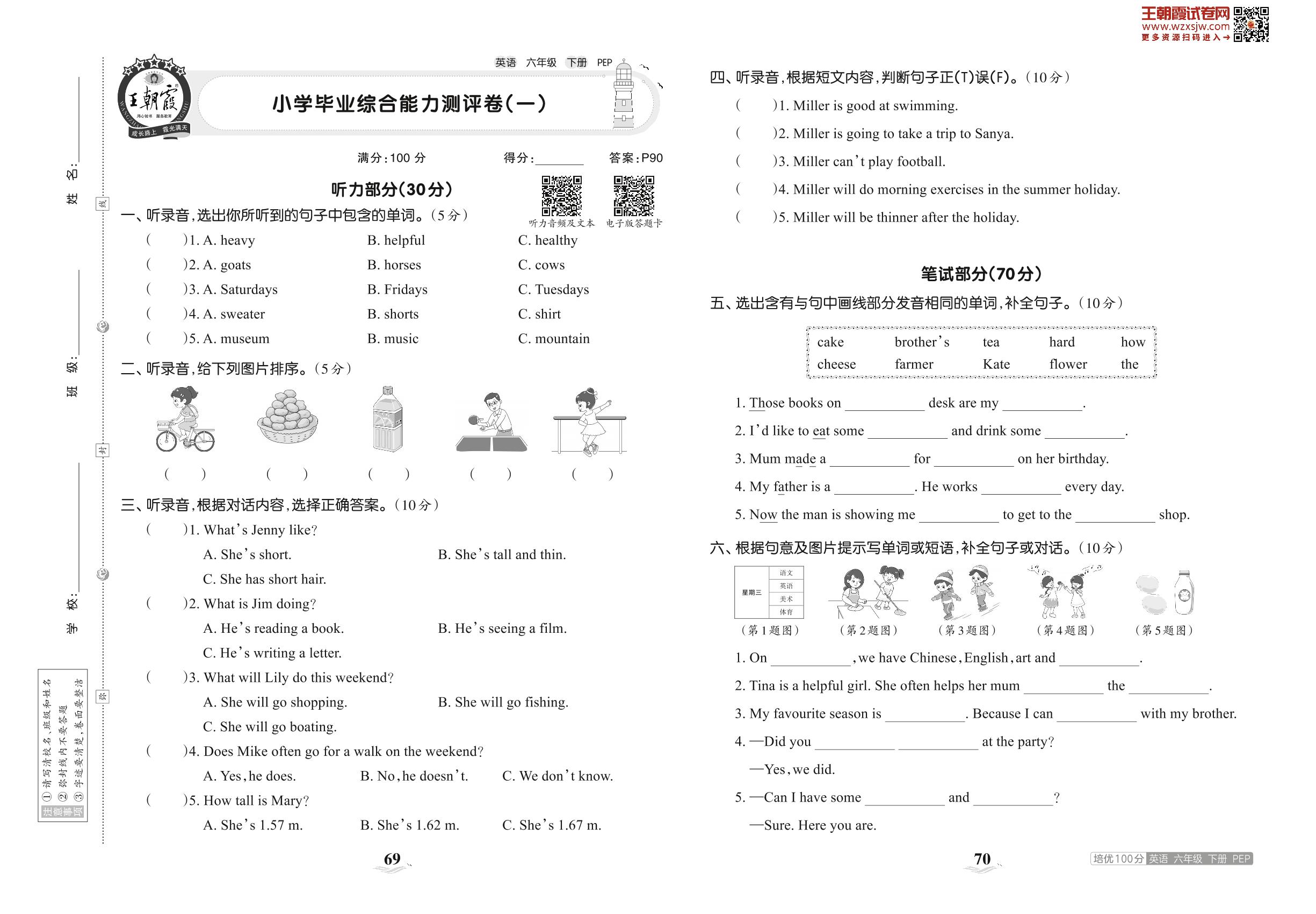 2023下册六年级英语人教PEP版 小学毕业综合能力测评卷(一)
