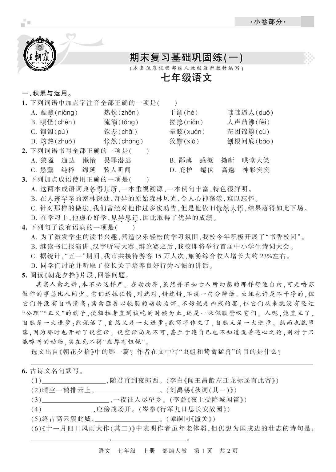 王朝霞期末小卷——期末复习基础巩固练七年级上册语文(人教版)_R210802161419【0】