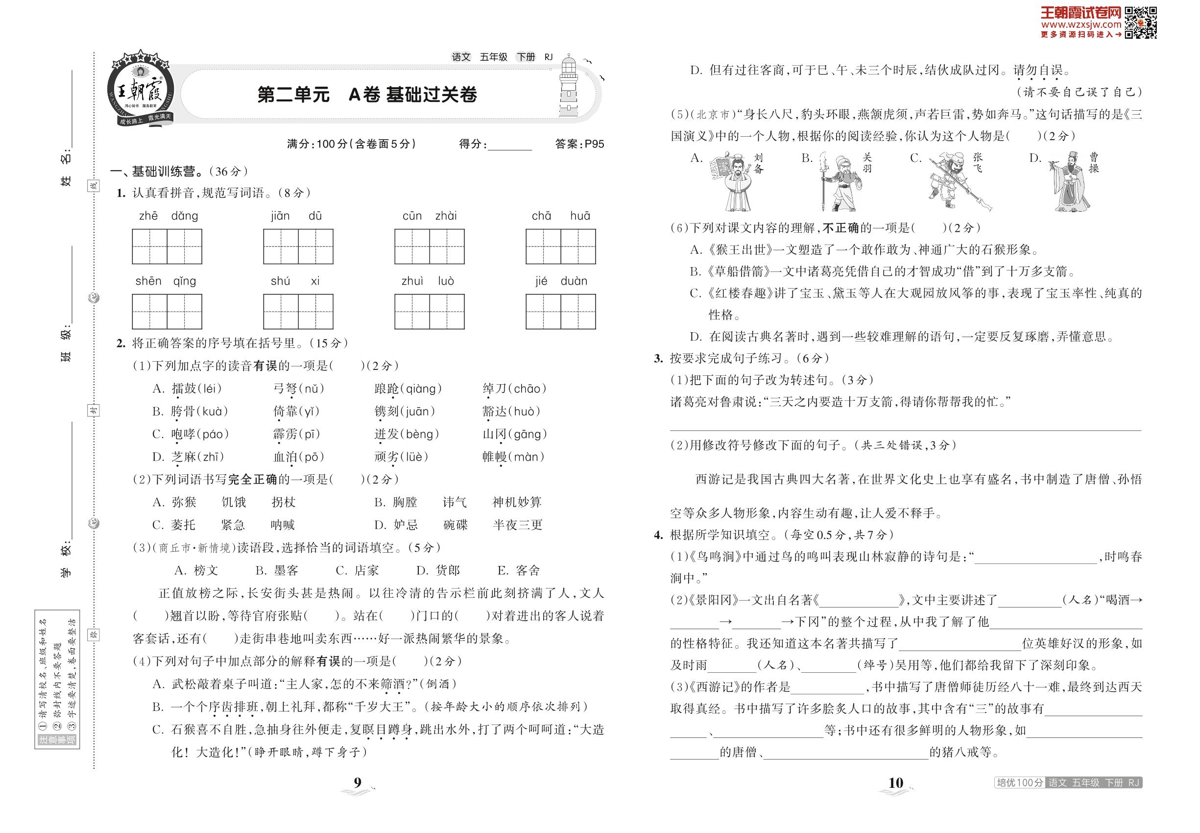 五年级语文人教版下册单元卷