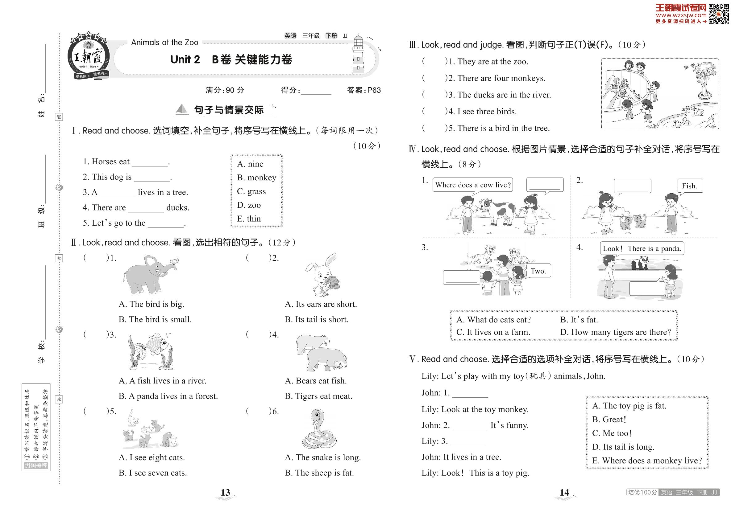 2023下册三年级英语冀教版 Unit 2 B卷 关键能力卷
