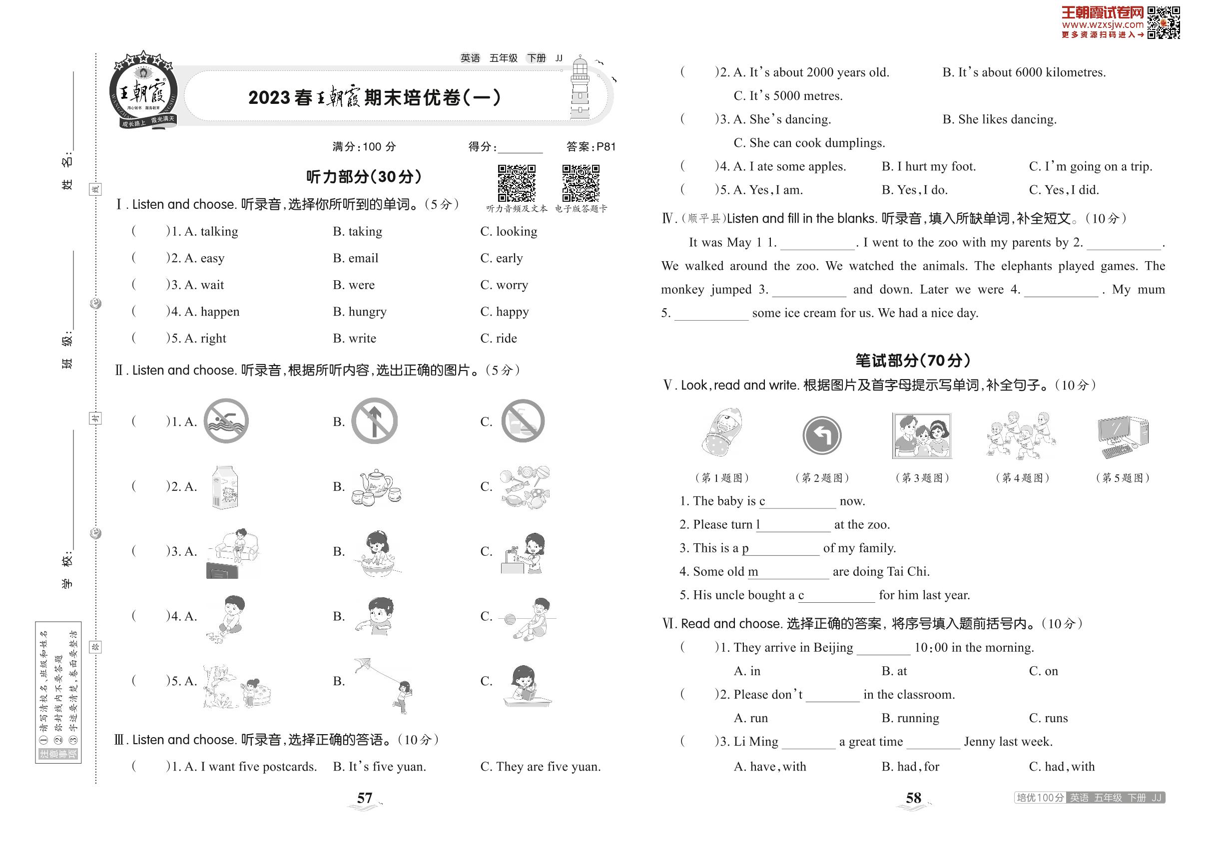 2023下册五年级英语冀教版 2023春王朝霞期末培优卷(一)