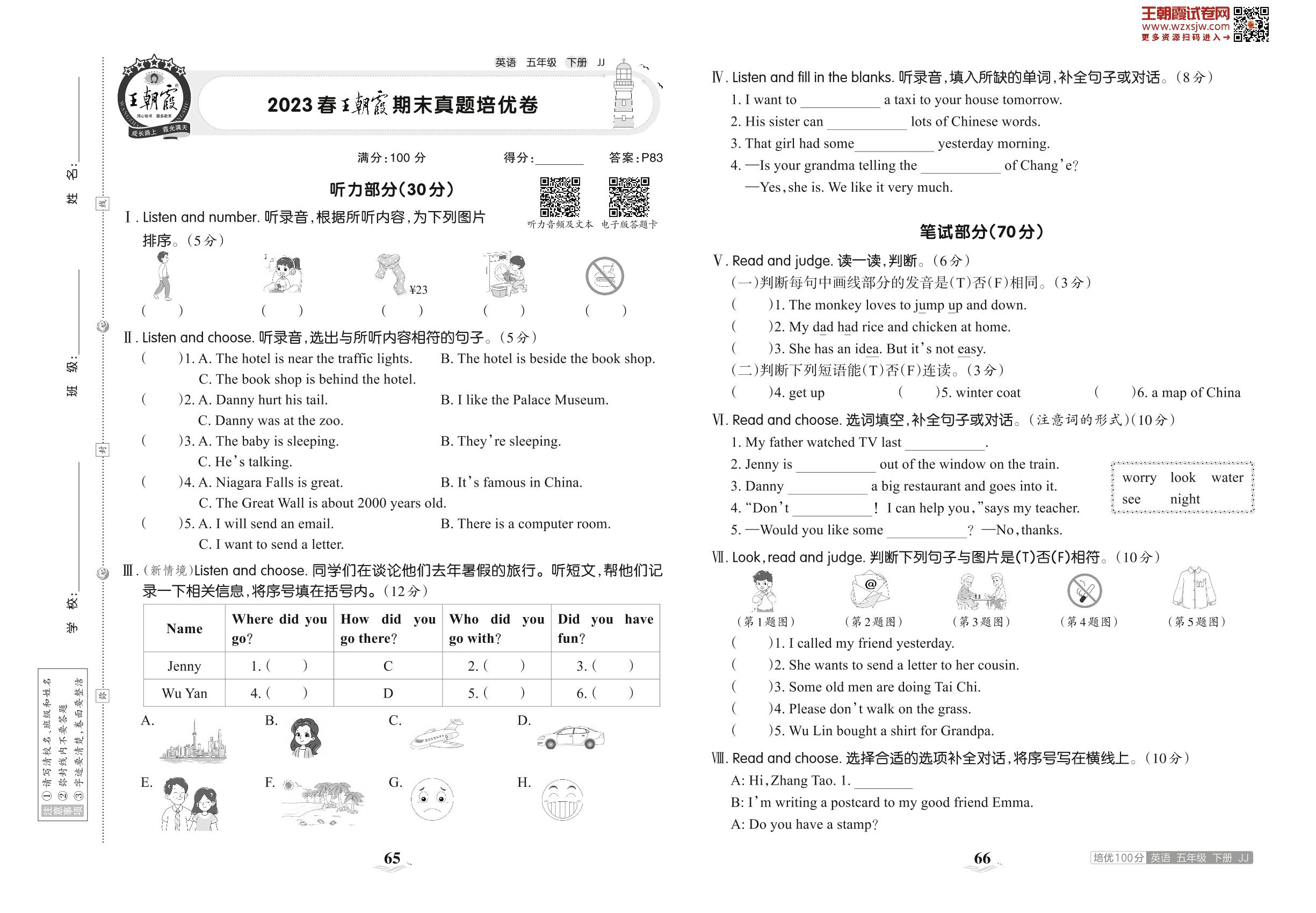 2023下册五年级英语冀教版 2023春王朝霞期末真题培优卷