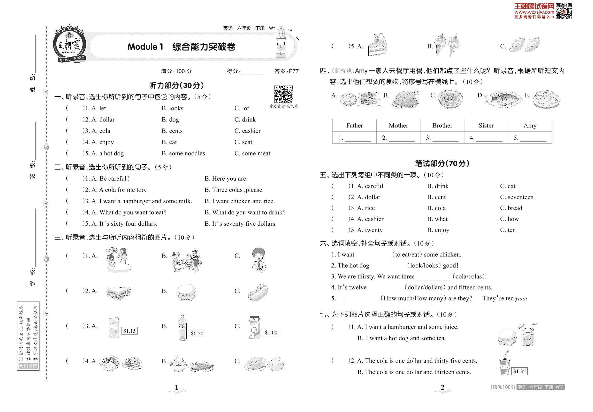 2023下册六年级英语外研版 Module 1 综合能力突破卷