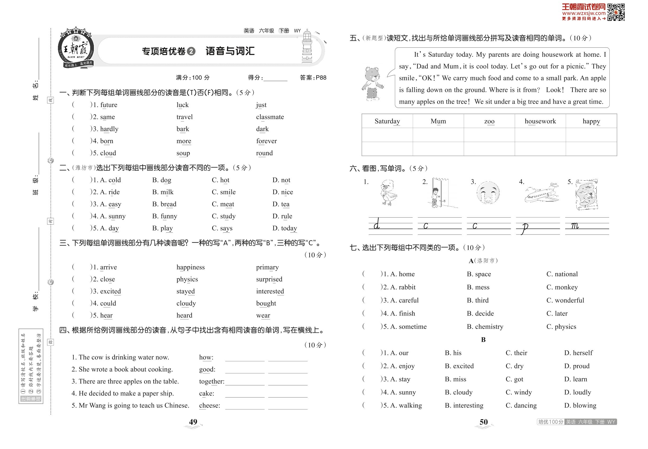 2023下册六年级英语外研版 专项培优卷2 语音与词汇