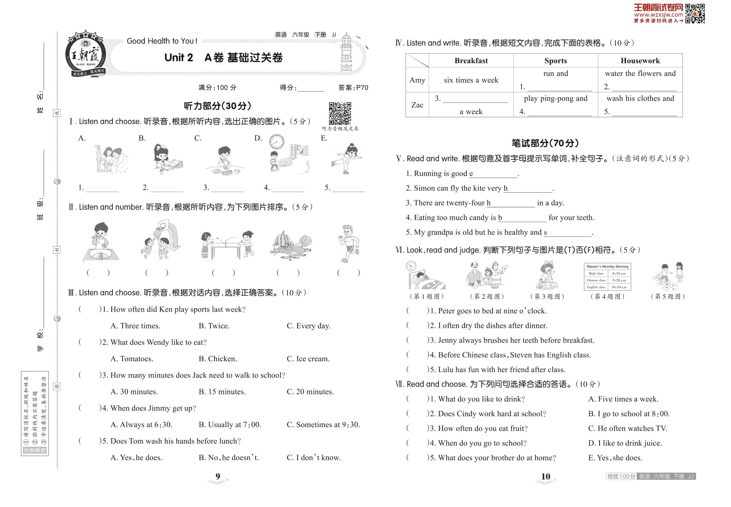 2023下册六年级英语冀教版 Unit 2 A卷 基础过关卷
