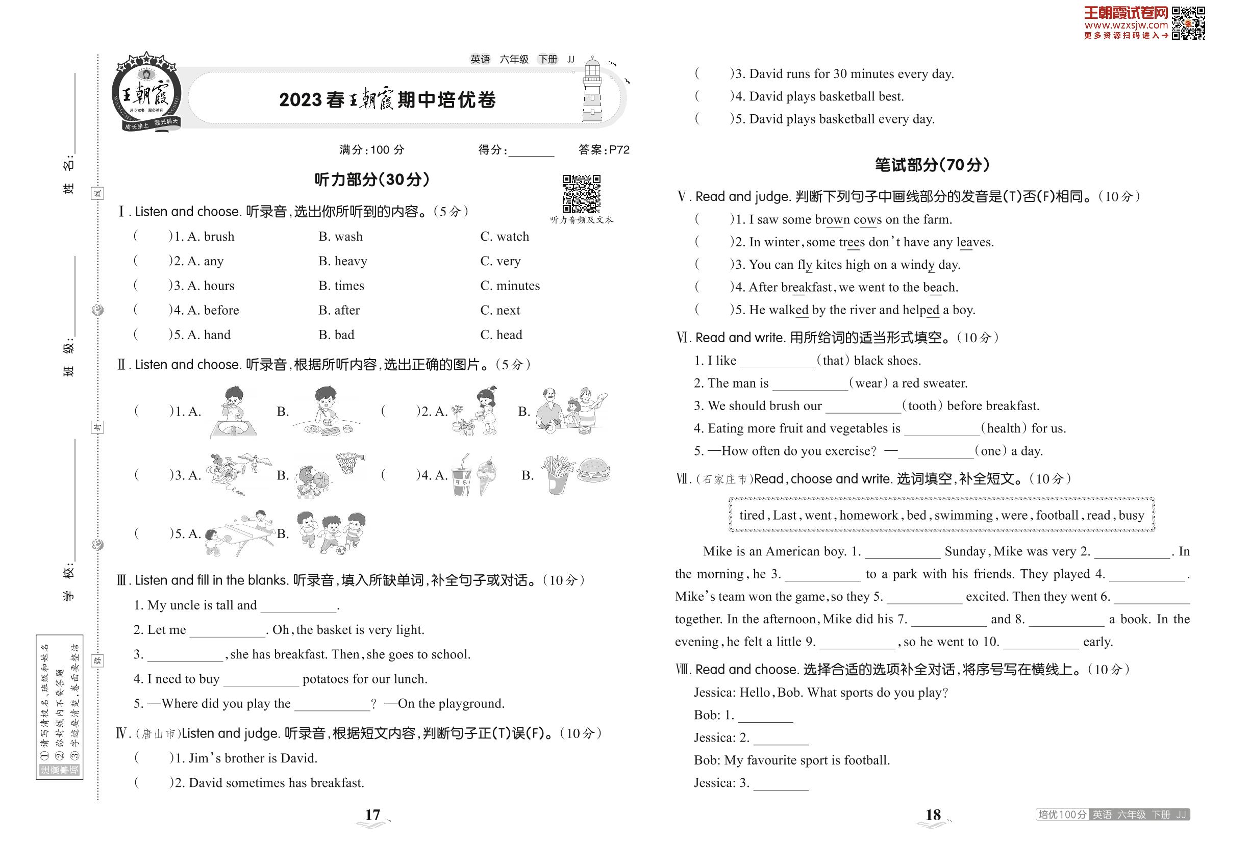 2023下册六年级英语冀教版 2023春王朝霞期中培优卷