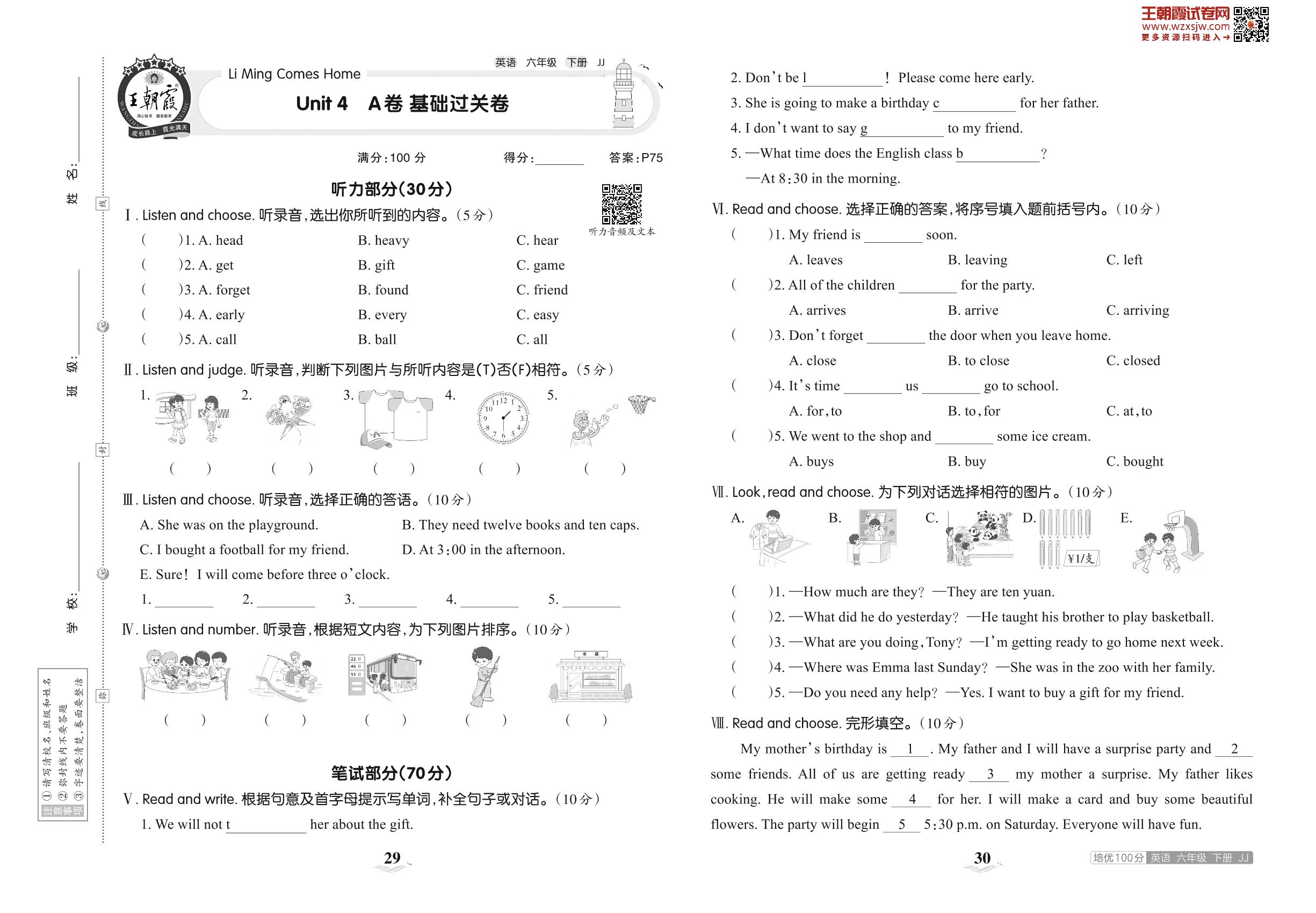 2023下册六年级英语冀教版 Unit 4 A卷 基础过关卷