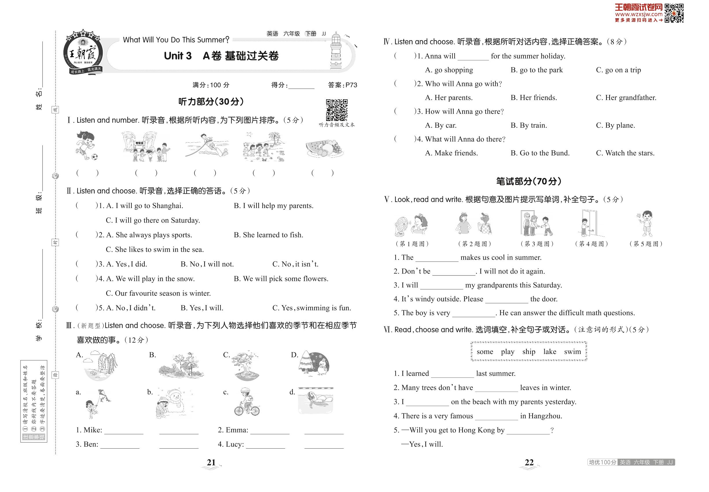 六年级英语冀教版下册单元卷