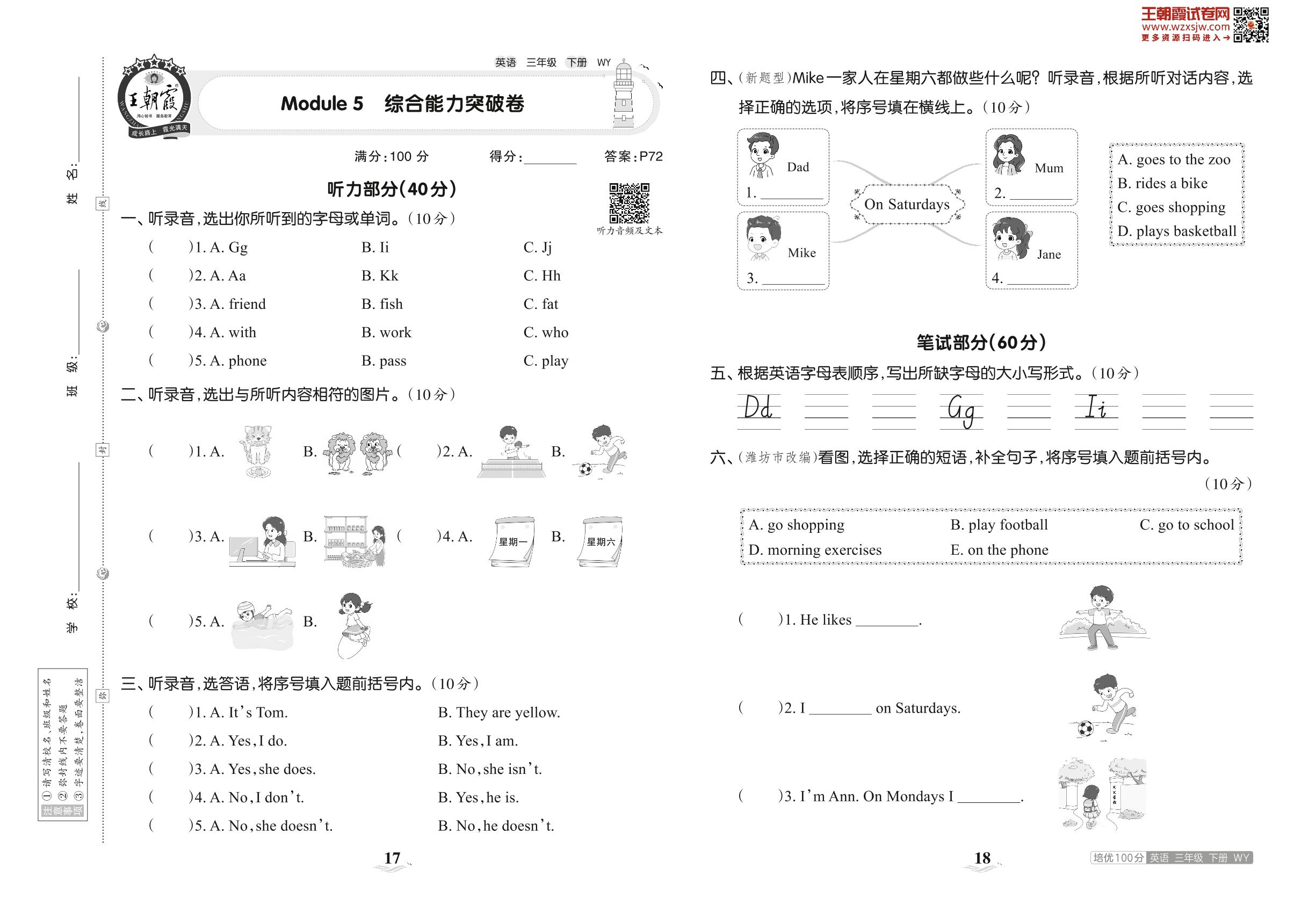 2023下册三年级英语外研版 Module 5 综合能力突破卷