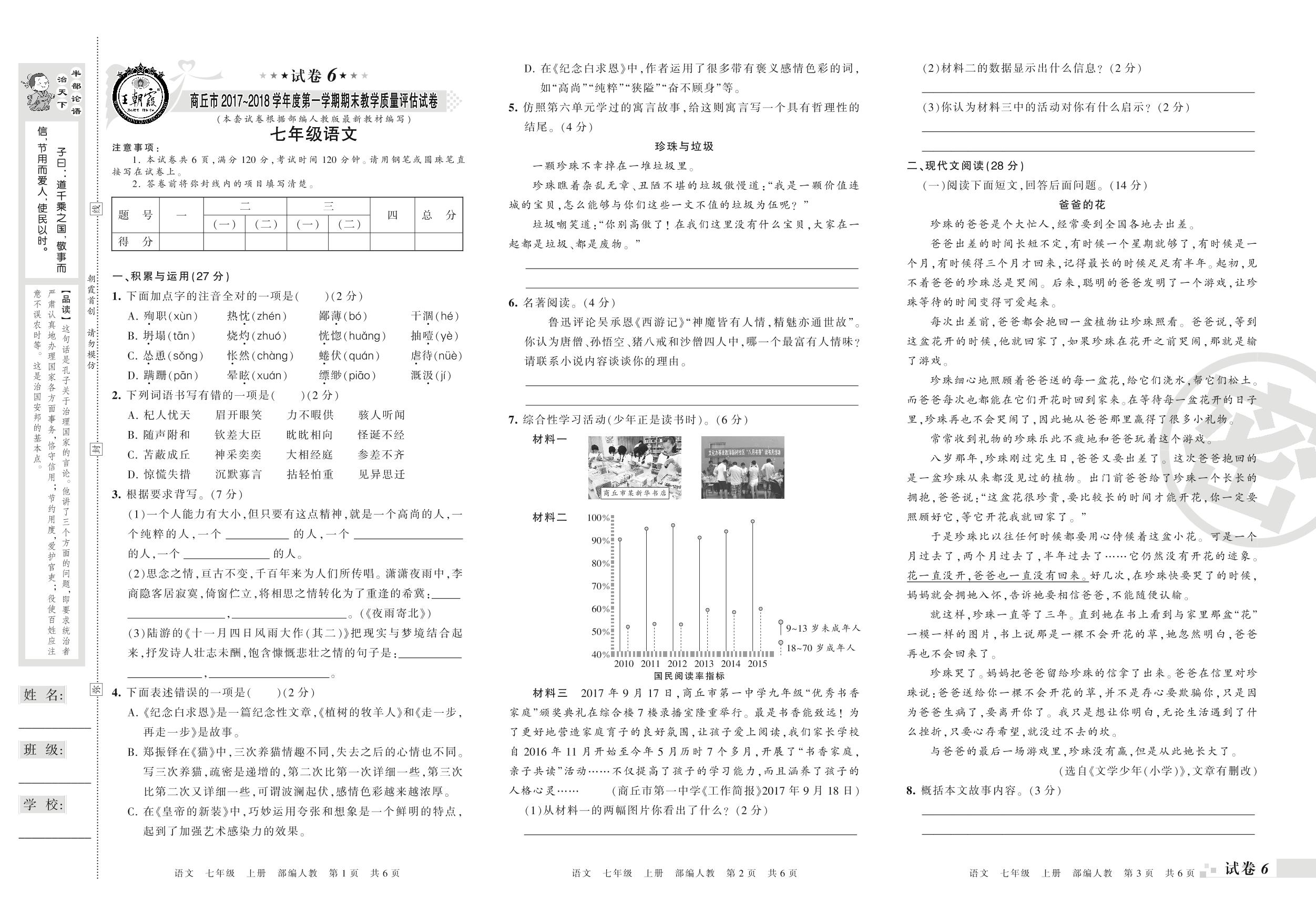 2017-2018学年第一学期商丘市七年级语文试卷(人教版)【6】