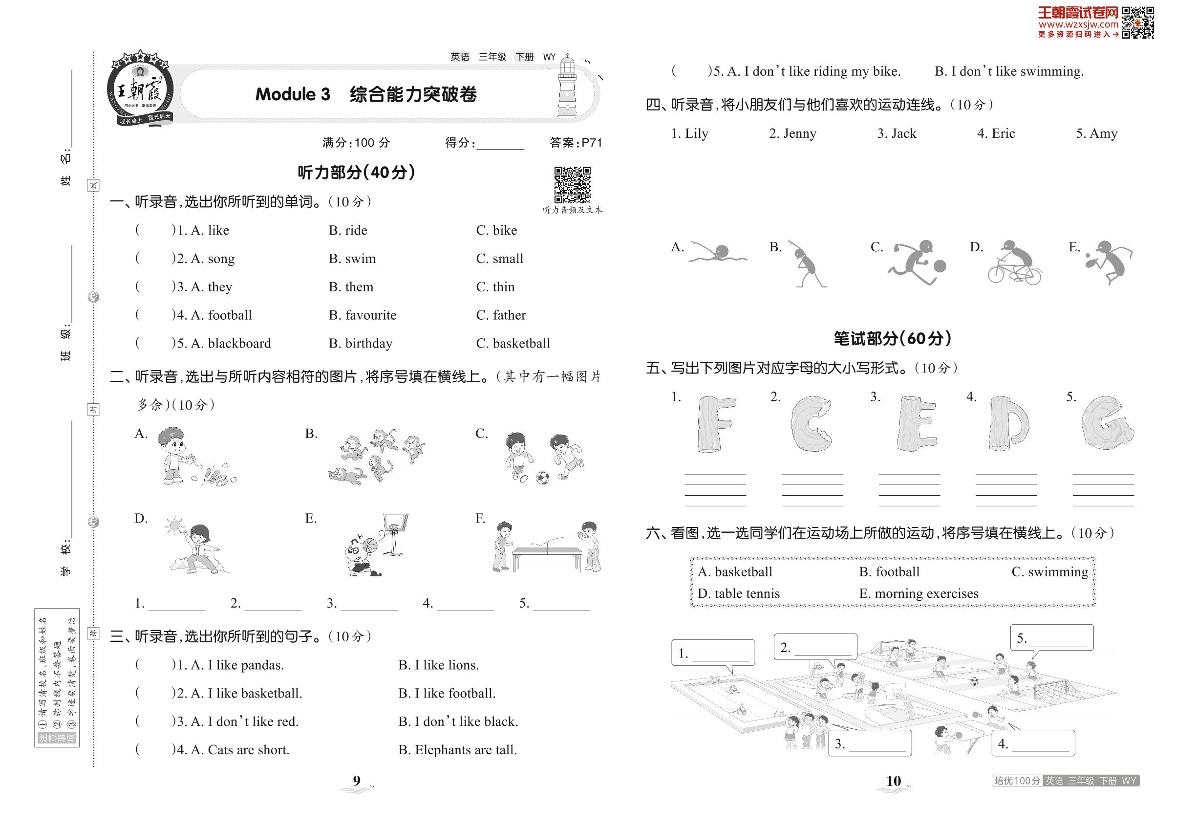 2023下册三年级英语外研版 Module 3 综合能力突破卷