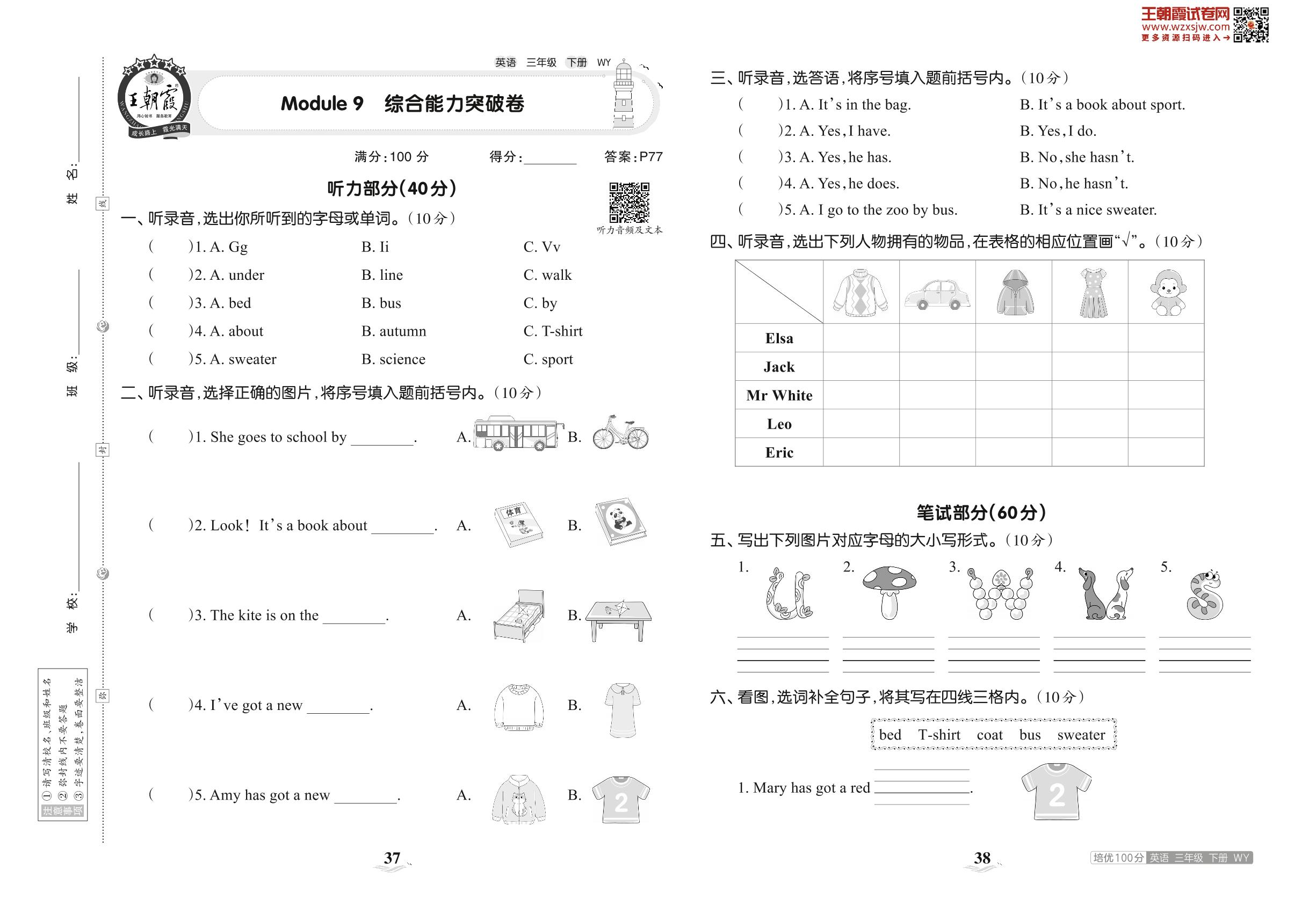 2023下册三年级英语外研版 Module 9 综合能力突破卷