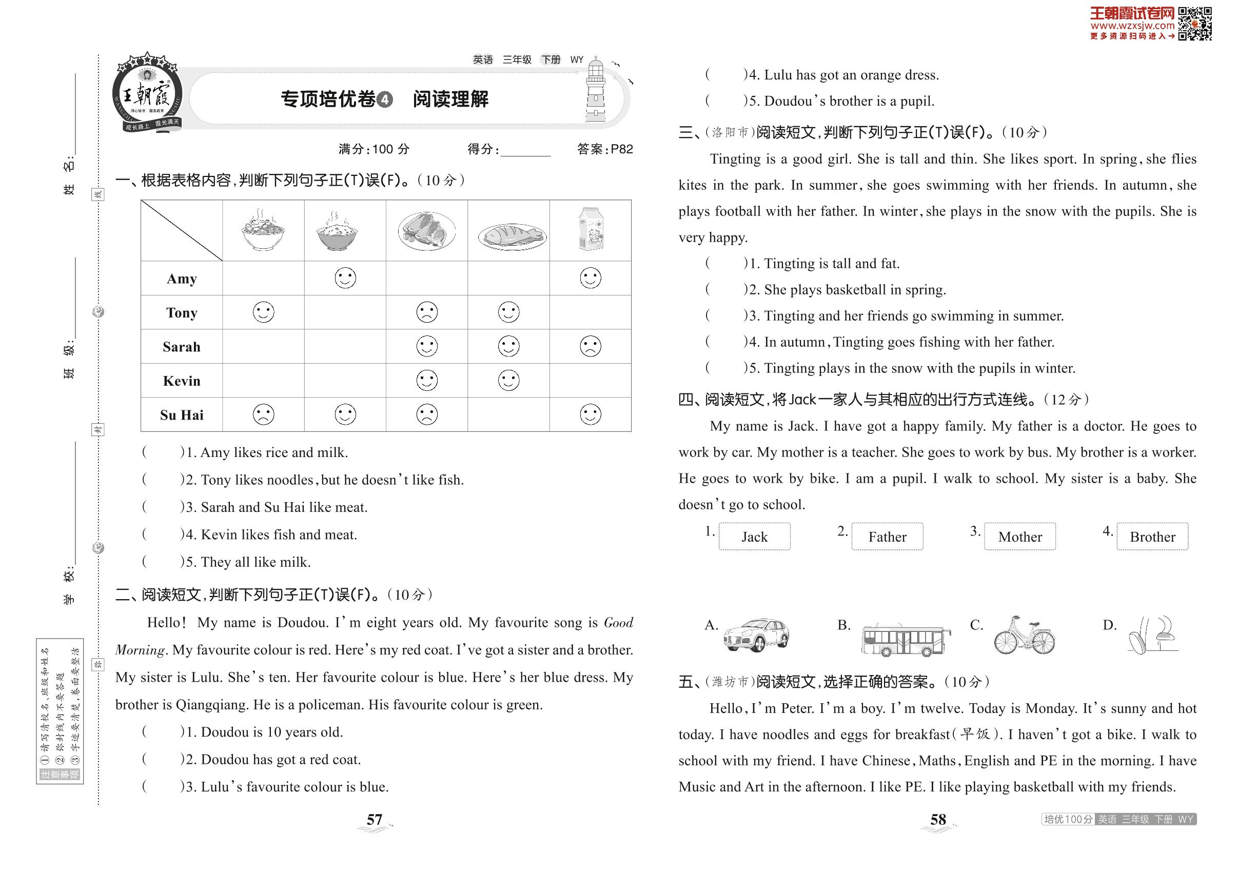 2023下册三年级英语外研版 专项培优卷4 阅读理解