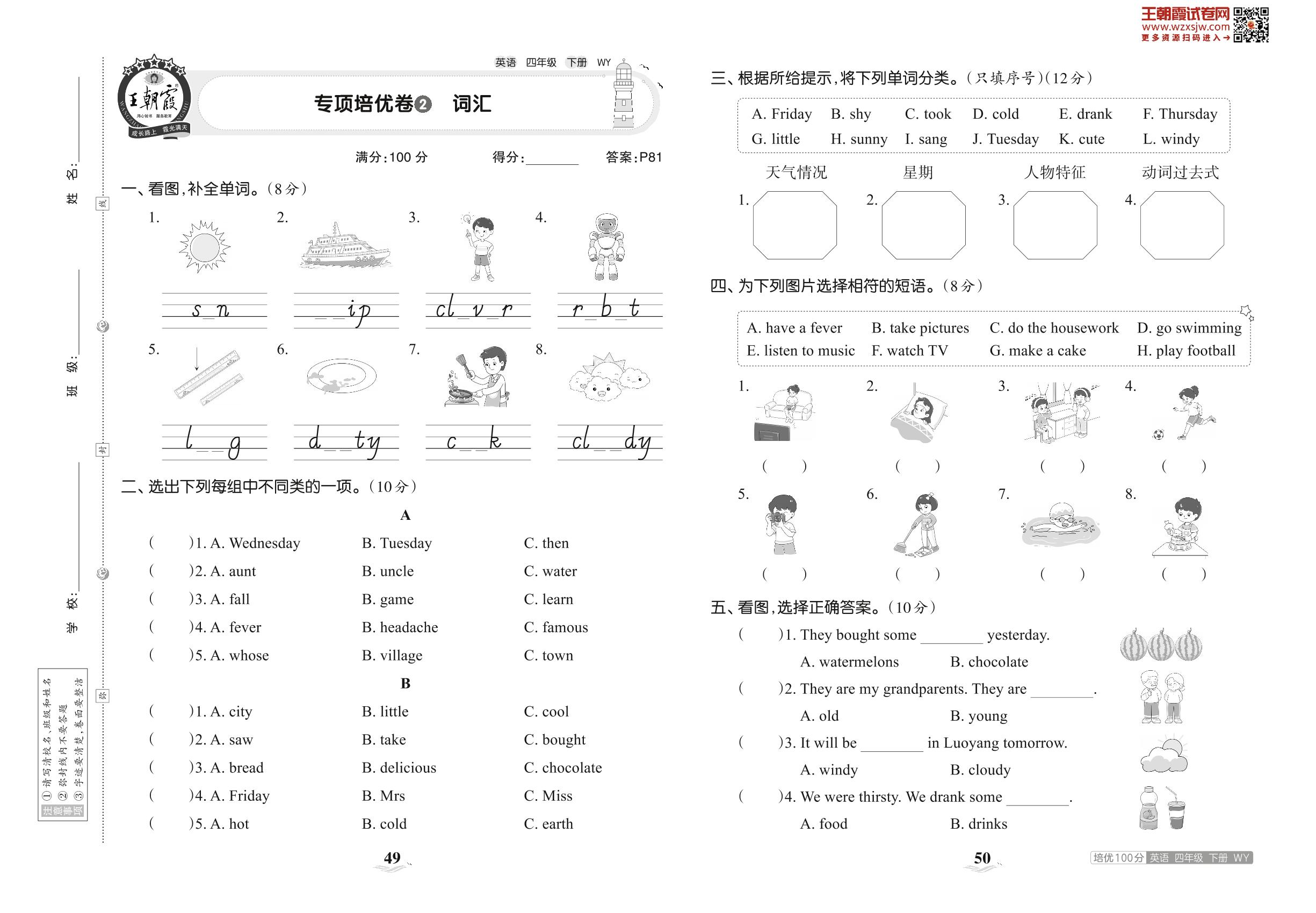 2023下册四年级英语外研版 专项培优卷2 词汇
