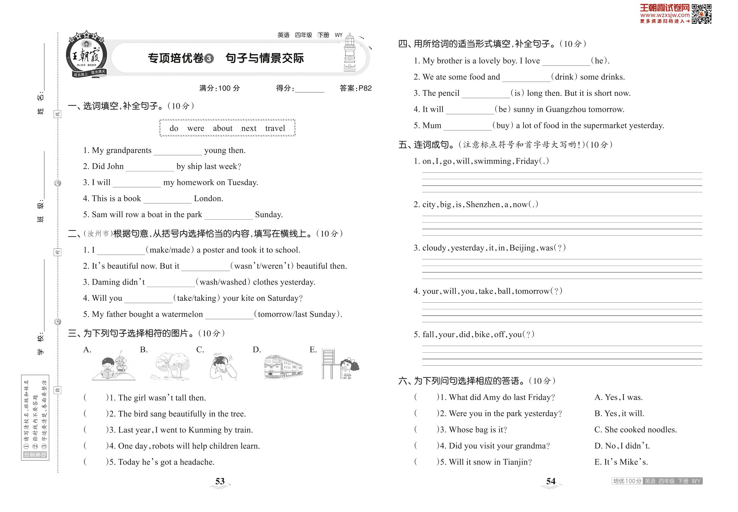2023下册四年级英语外研版 专项培优卷3 句子与情景交际