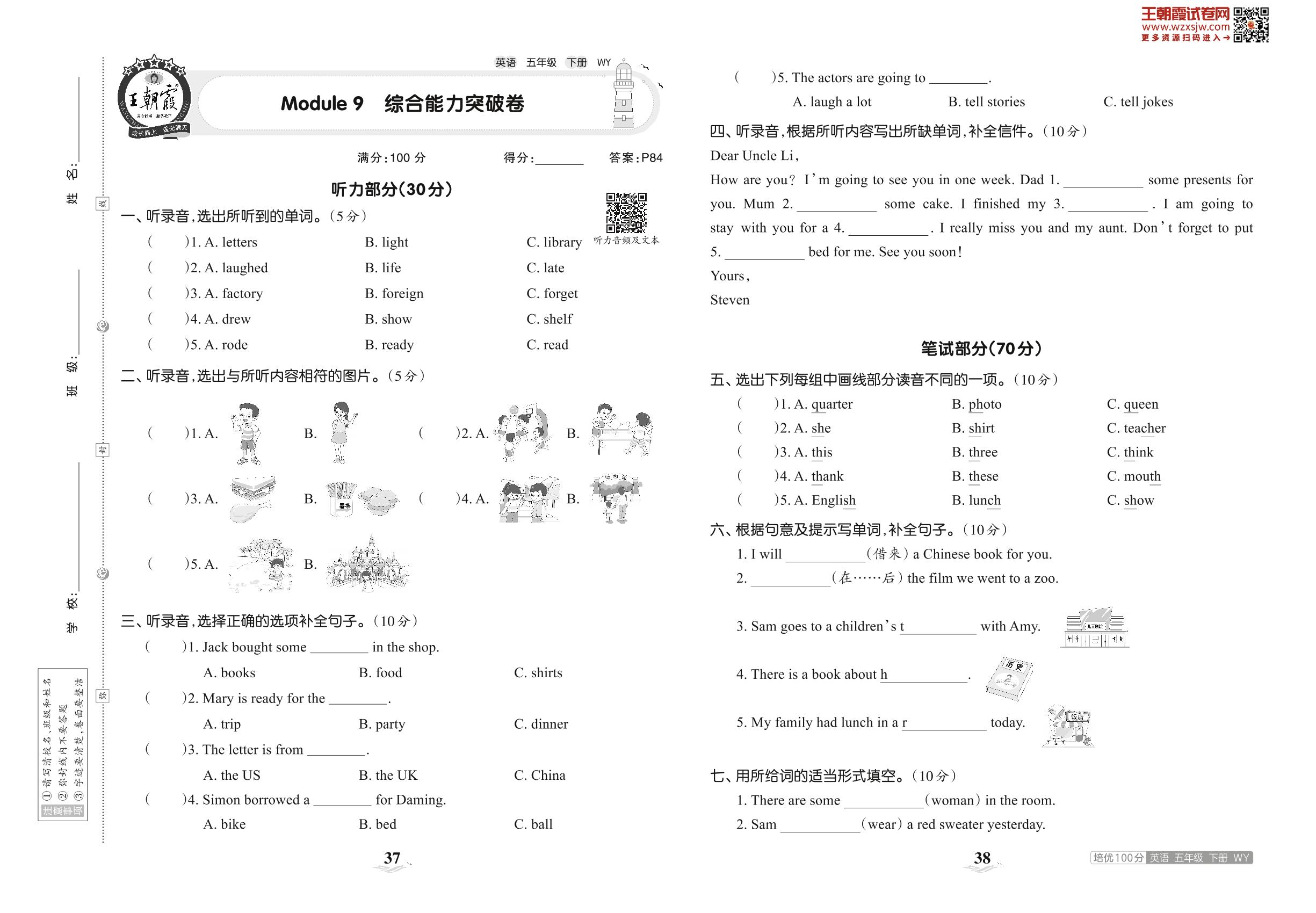 2023下册五年级英语外研版 Module 9 综合能力突破卷