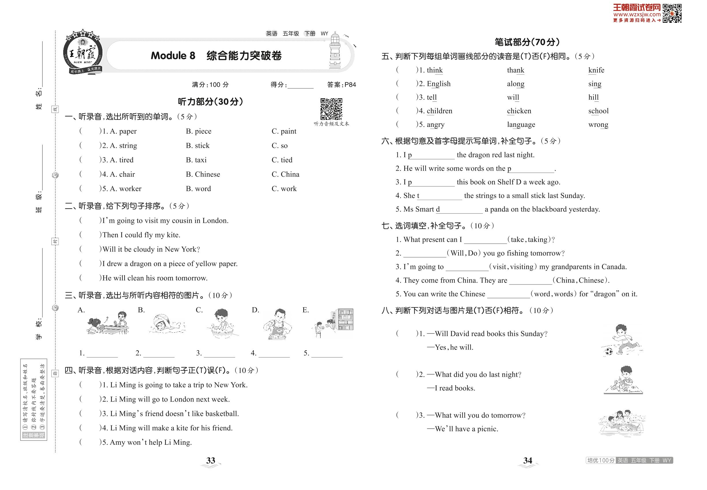 2023下册五年级英语外研版 Module 8 综合能力突破卷