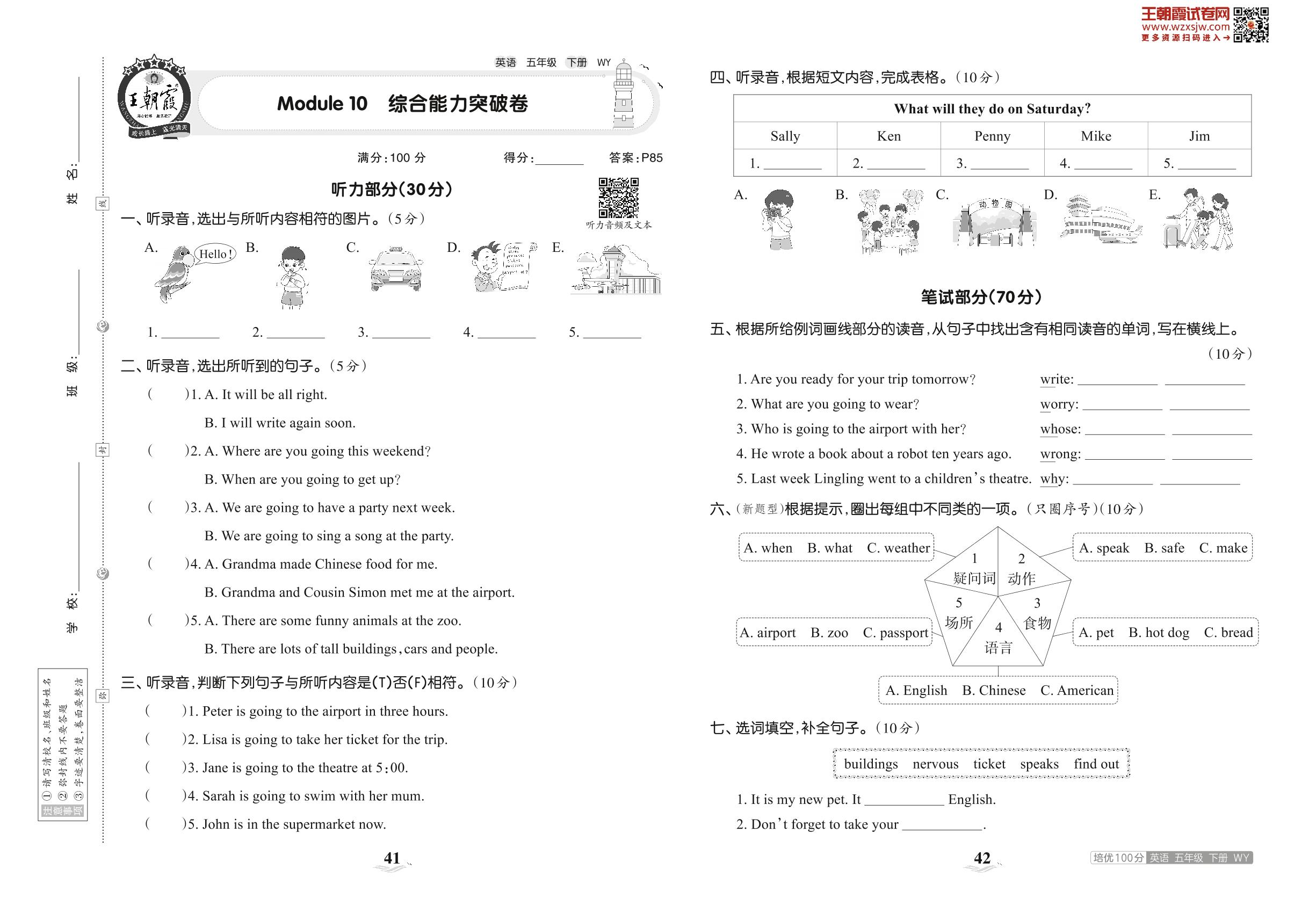 2023下册五年级英语外研版 Module 10 综合能力突破卷
