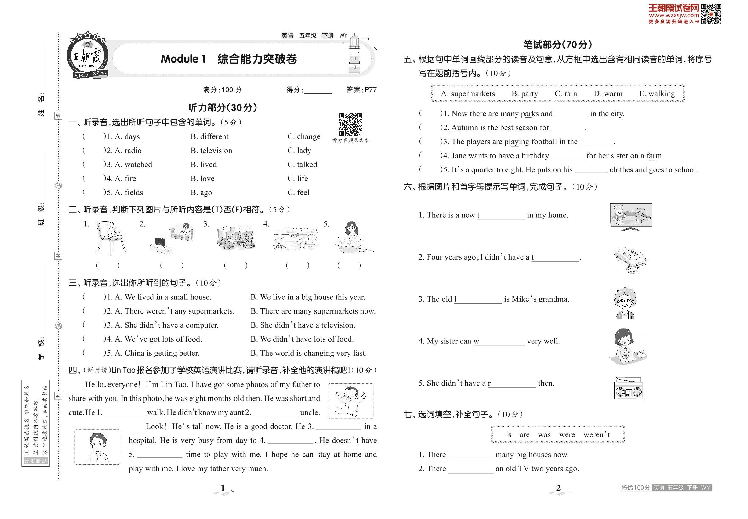 五年级英语外研版(三起始)下册单元卷