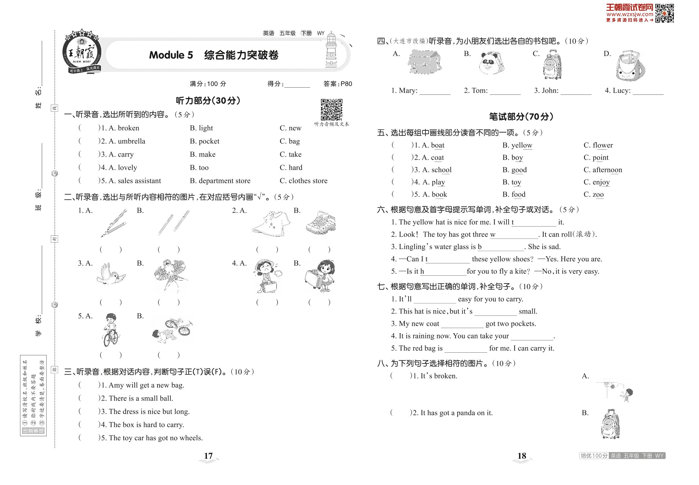 2023下册五年级英语外研版 Module 5 综合能力突破卷