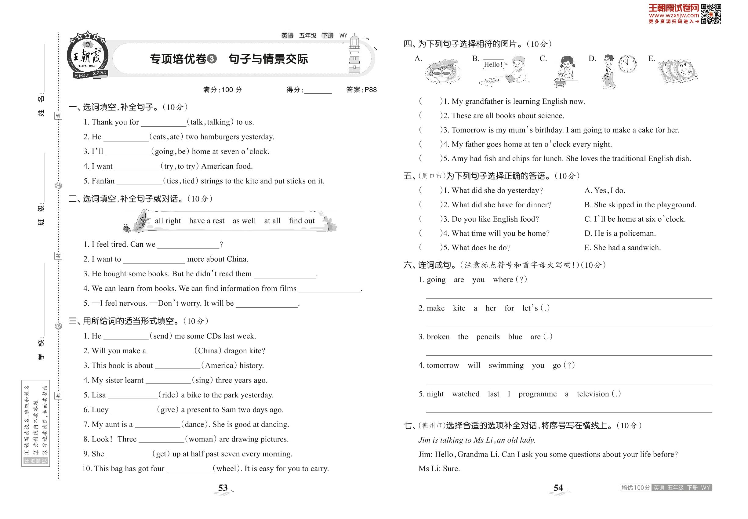 2023下册五年级英语外研版 专项培优卷3 句子与情景交际