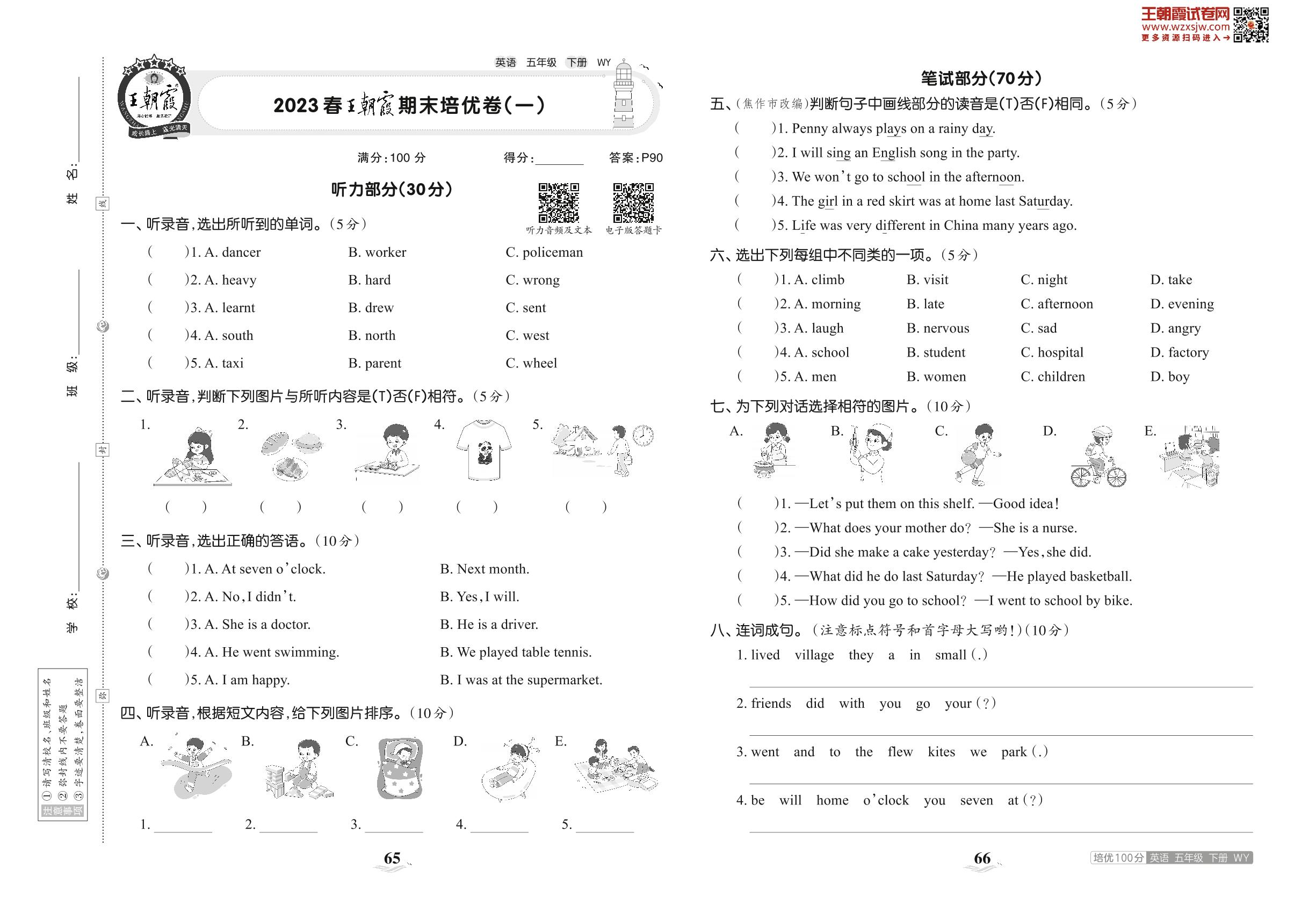 2023下册五年级英语外研版 2023春王朝霞期末培优卷(一)