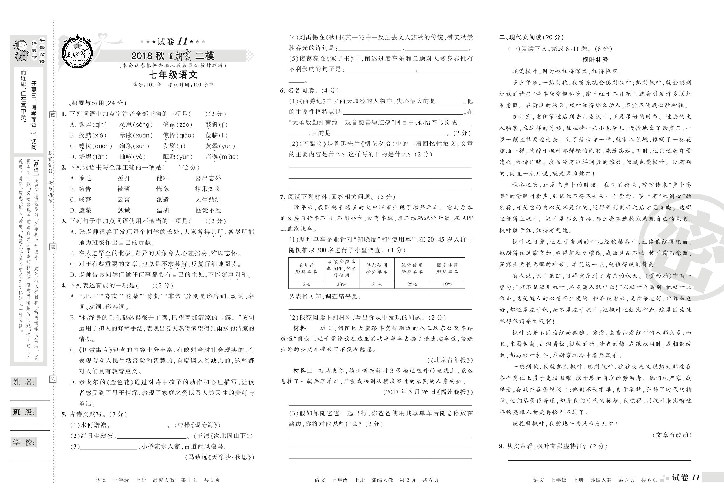 王朝霞期末模拟卷七年级上册语文(人教版)_R210802162045【11】