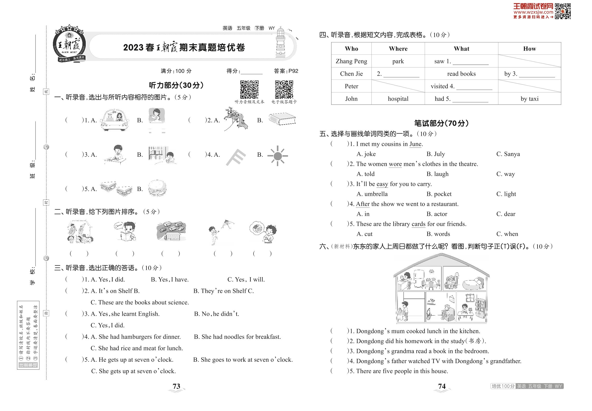 2023下册五年级英语外研版 2023春王朝霞期末真题培优卷