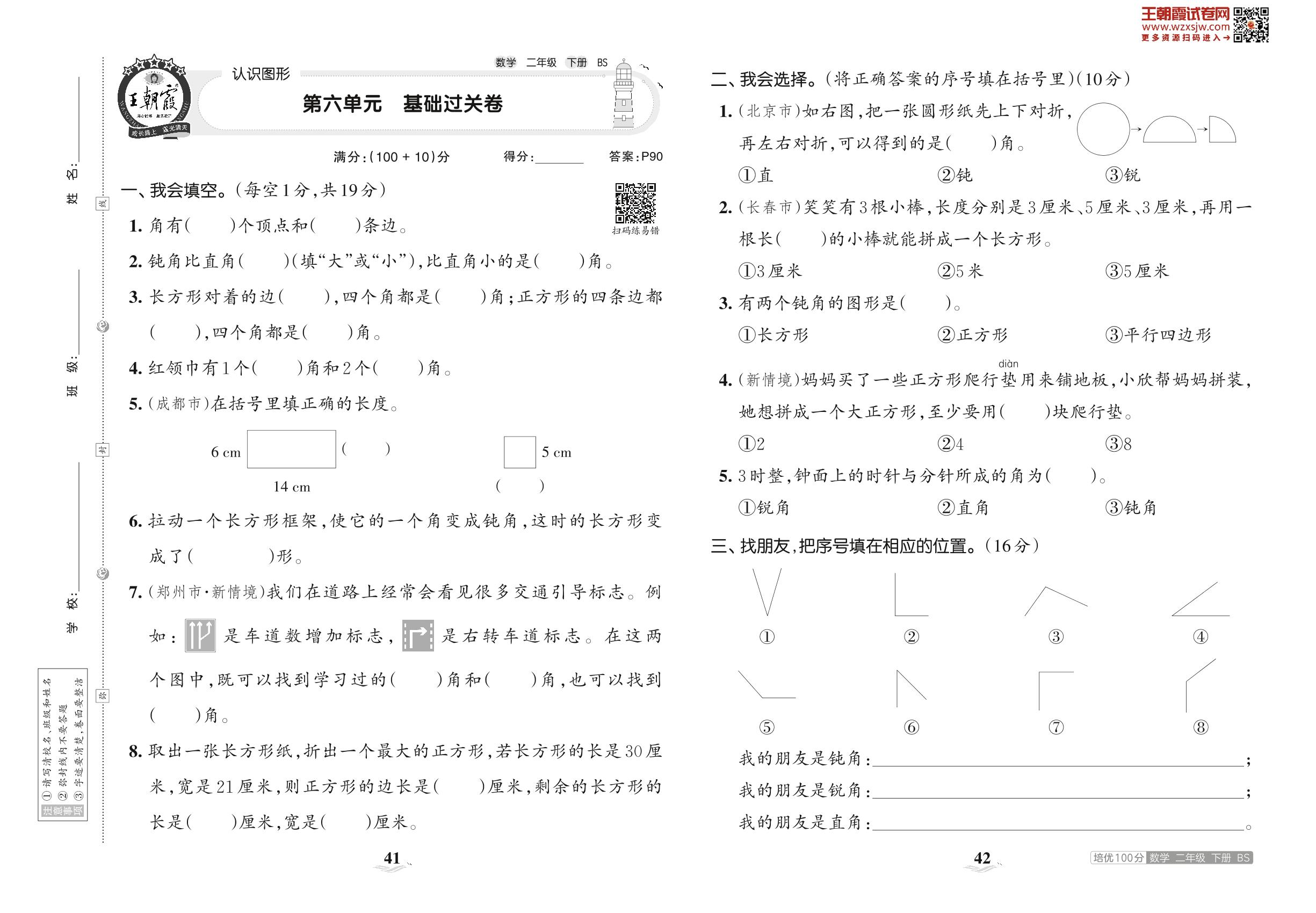 2023下册二年级数学北师版 第六单元 基础过关卷