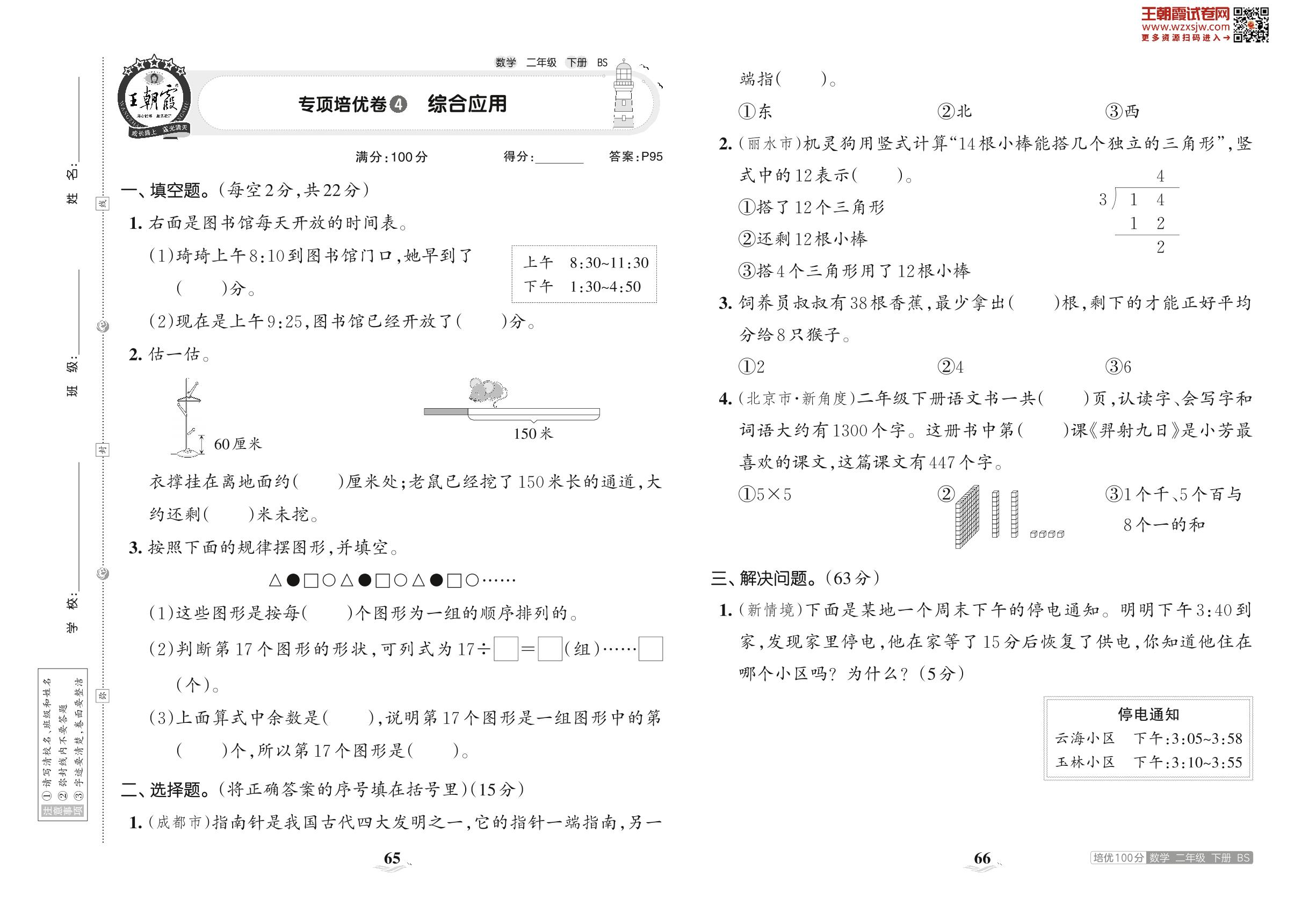 2023下册二年级数学北师版 专项培优卷4 综合应用
