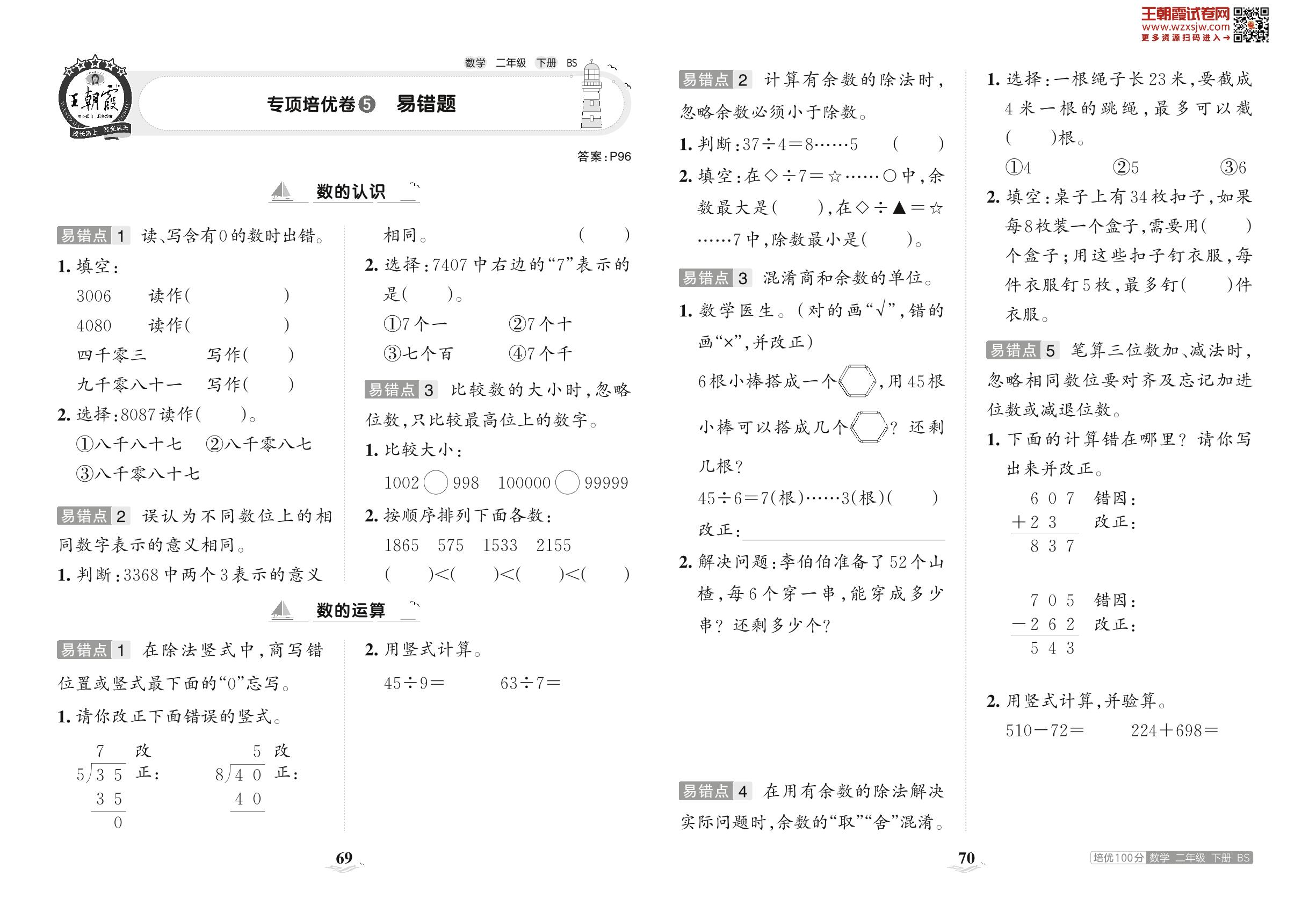 2023下册二年级数学北师版 专项培优卷5 易错题