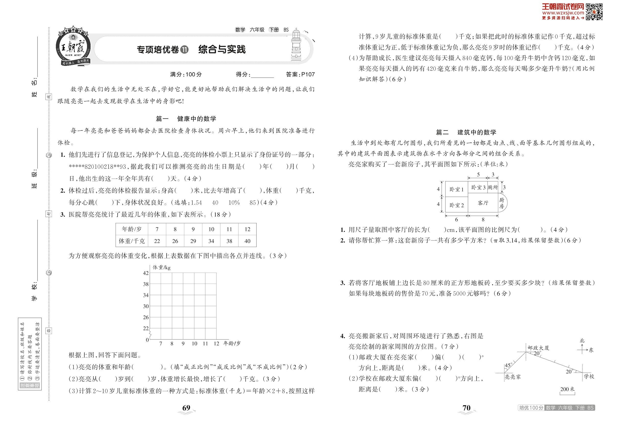 2023下册六年级数学北师版 专项培优卷11 综合与实践
