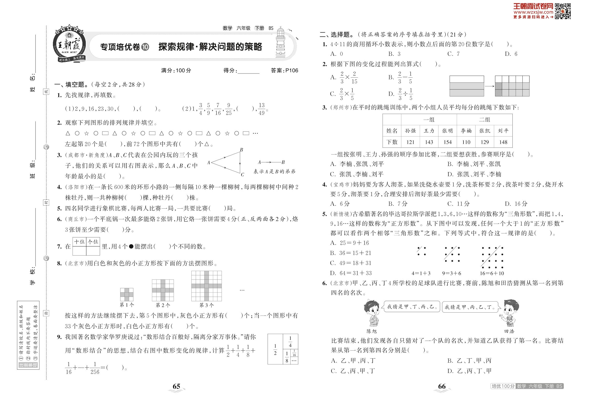 2023下册六年级数学北师版 专项培优卷10 探索规律·解决问题的策略