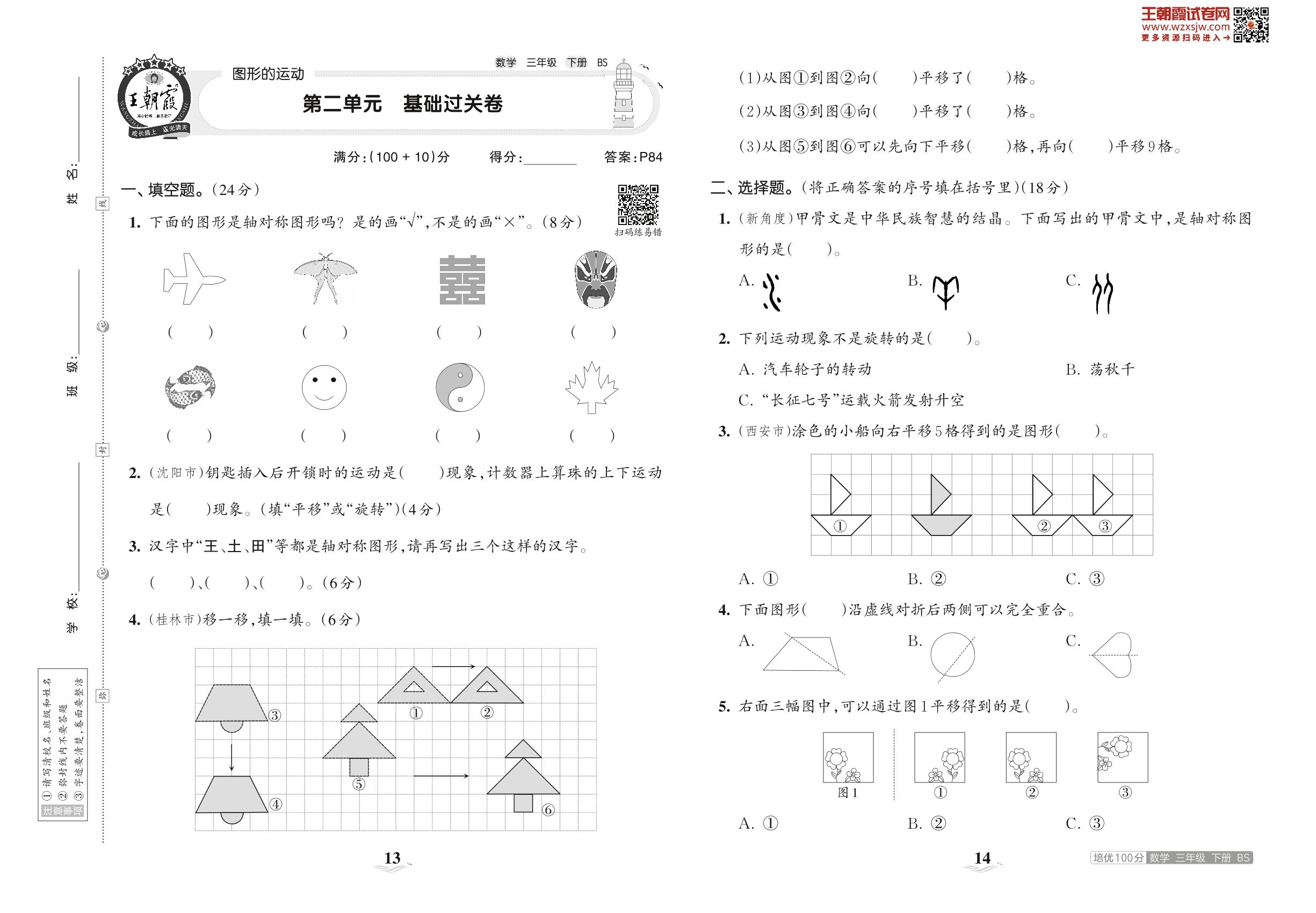 2023下册三年级数学北师版 第二单元 基础过关卷