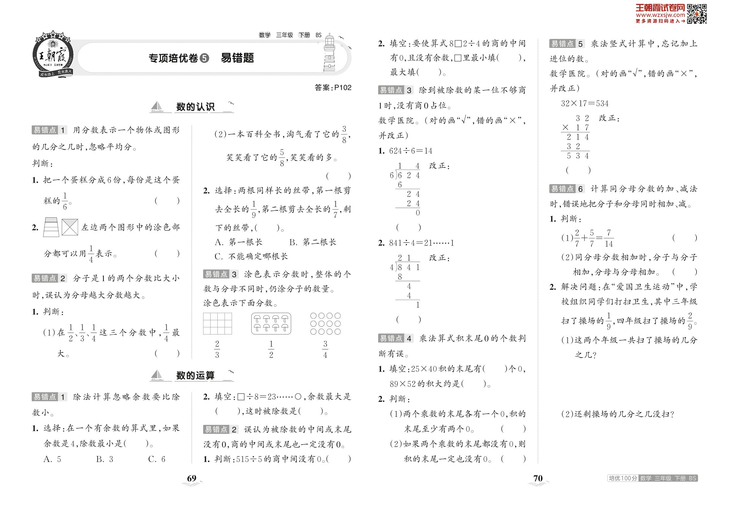 2023下册三年级数学北师版 专项培优卷5 易错题