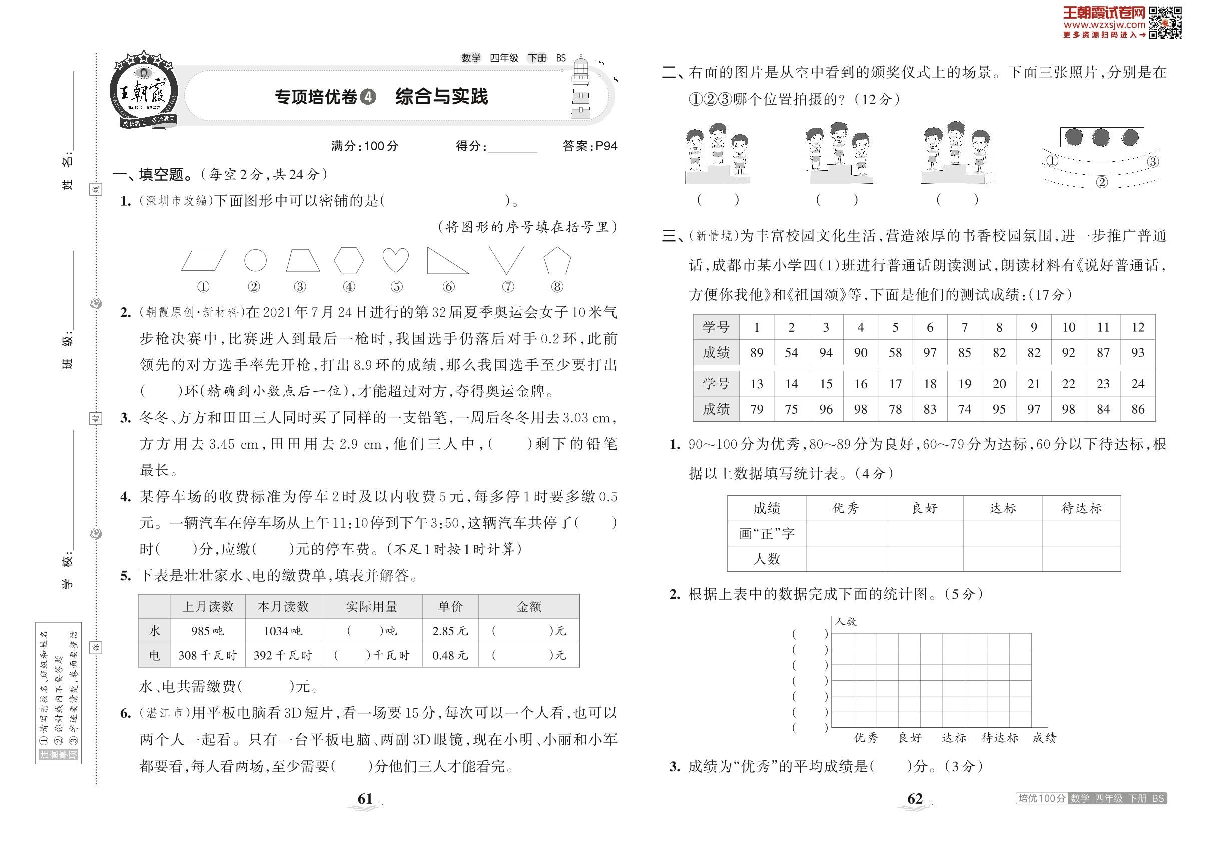 2023下册四年级数学北师版 专项培优卷4 综合与实践