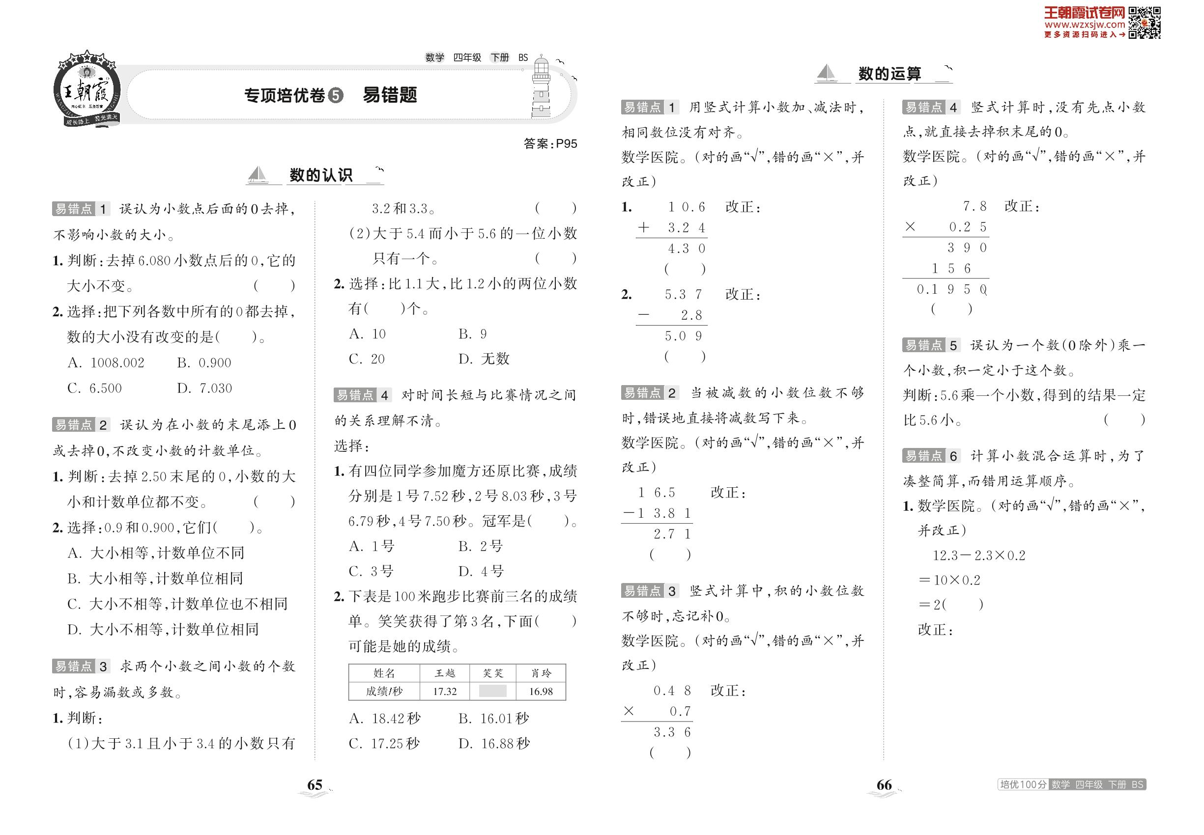 2023下册四年级数学北师版 专项培优卷5 易错题