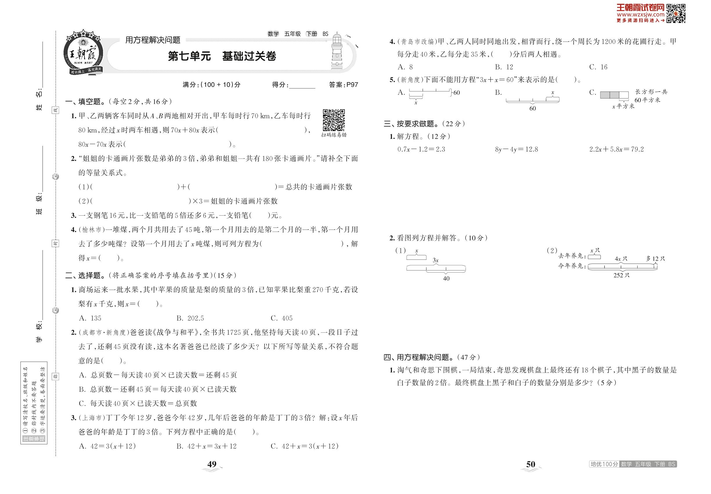 2023下册五年级数学北师版 第七单元 基础过关卷